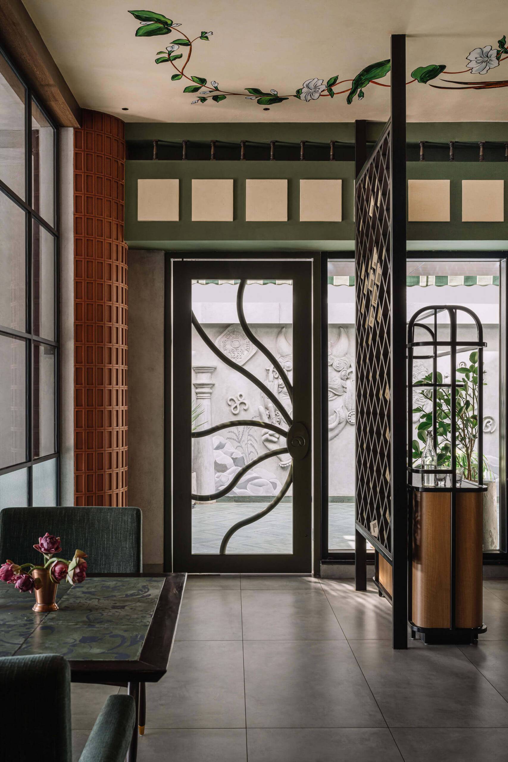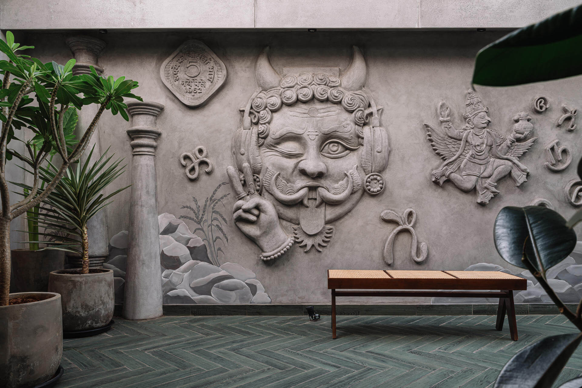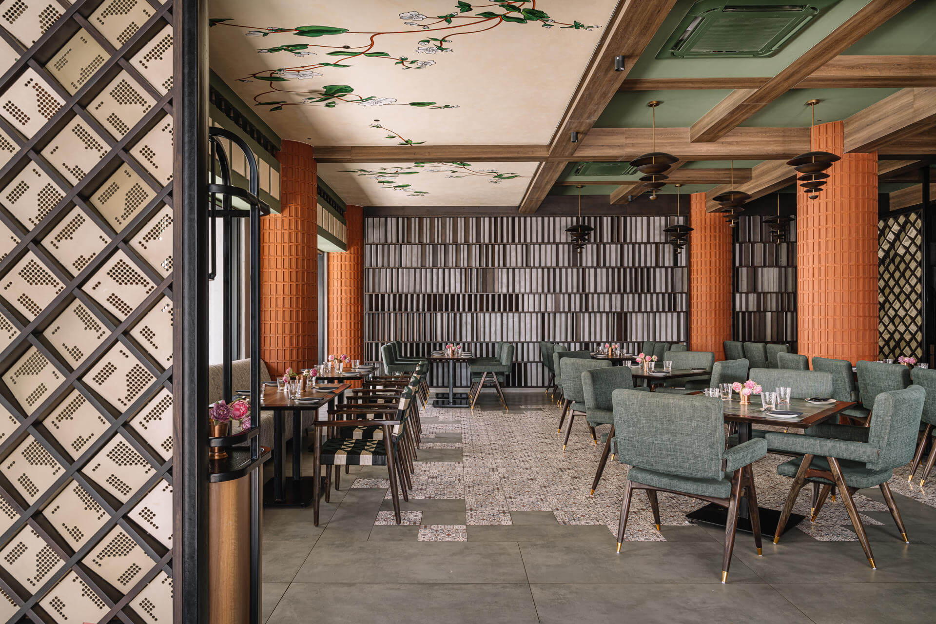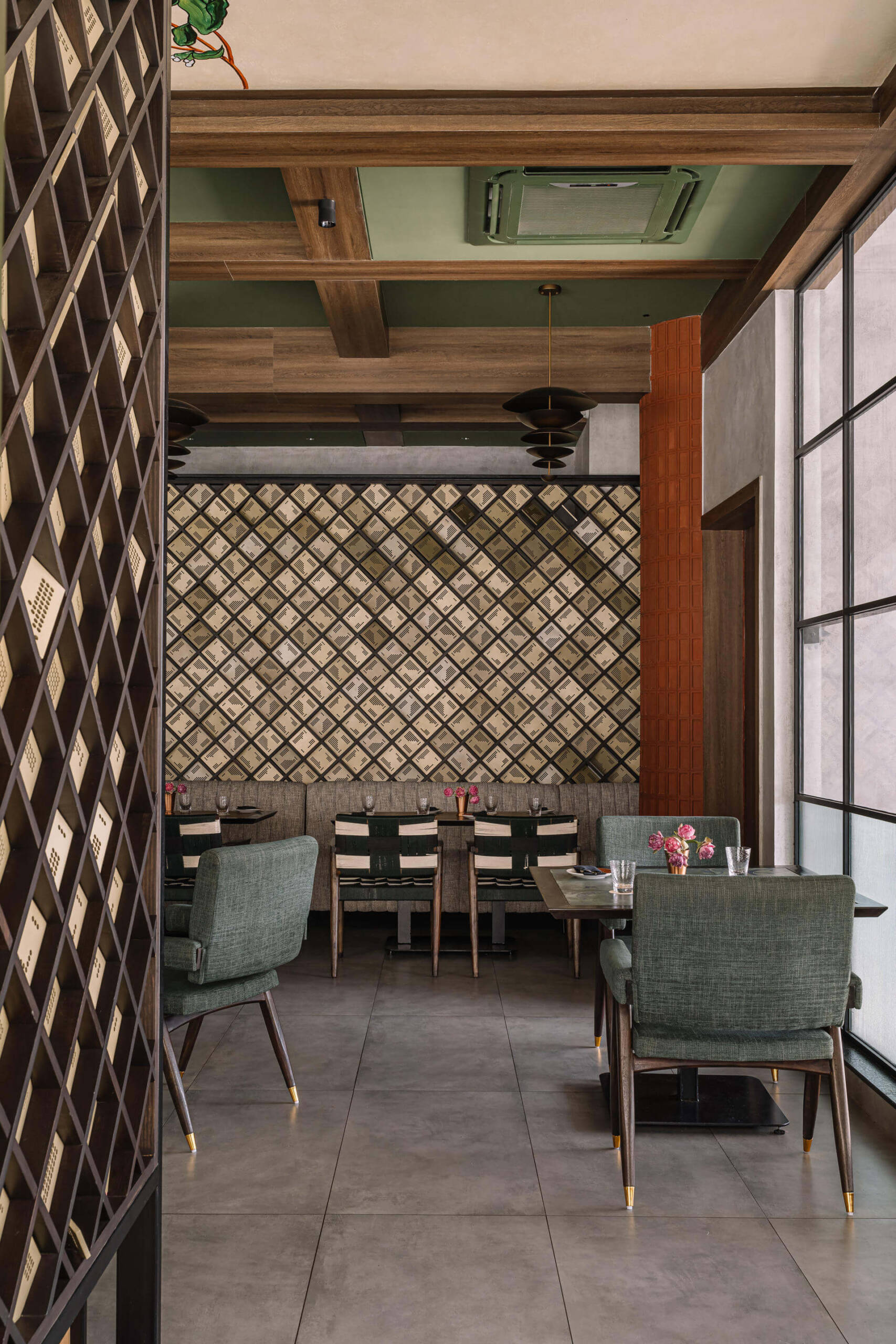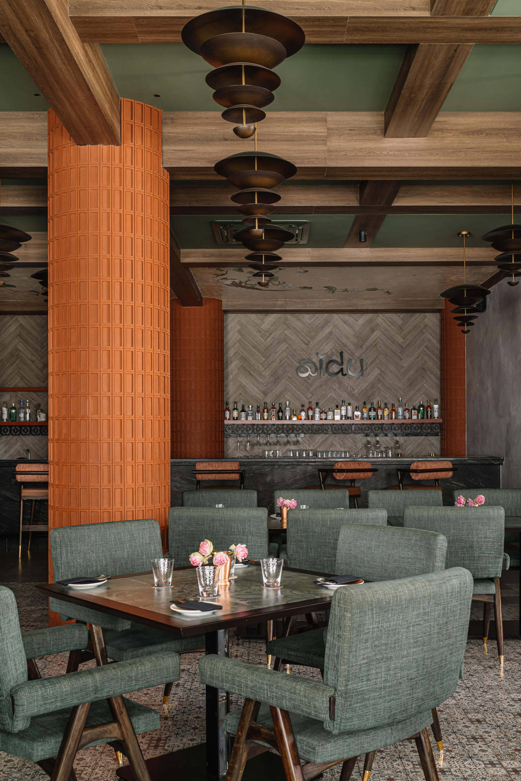 Inspired by the essence of South Indian culture, Aidu reimagines tradition through a bold, contemporary lens. Earthy materials, symbolic motifs, and playful design elements come together to create a layered, immersive dining experience. From handcrafted jaalis to coffered ceilings and sensory cues reflecting the number five, every detail pays homage to regional roots while offering a vibrant, modern vibe. Thoughtfully zoned interiors and seamless functionality make it equally perfect for intimate dinners or lively gatherings.