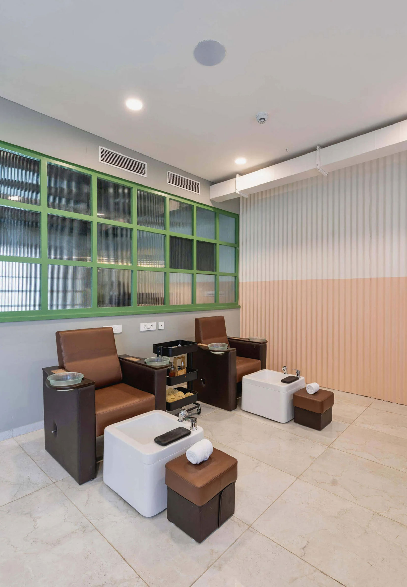 Velvet fabrics add to the glam factor while the brass front island bar takes centre and smaller elements of brass are spotted all over the furniture and other wall panels! The intention was to keep it clean, chic and classy yet with a fun factor to woo the guests!