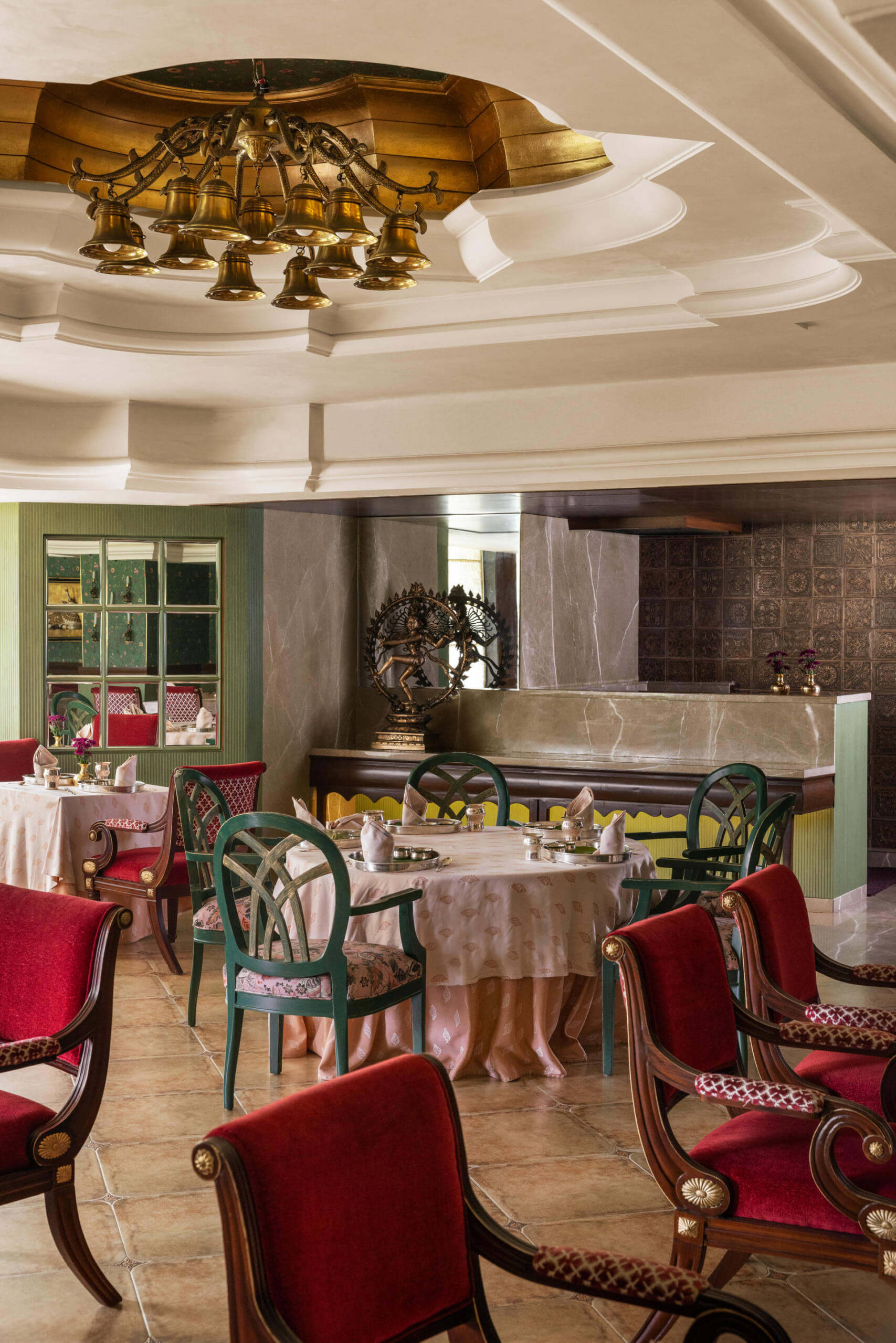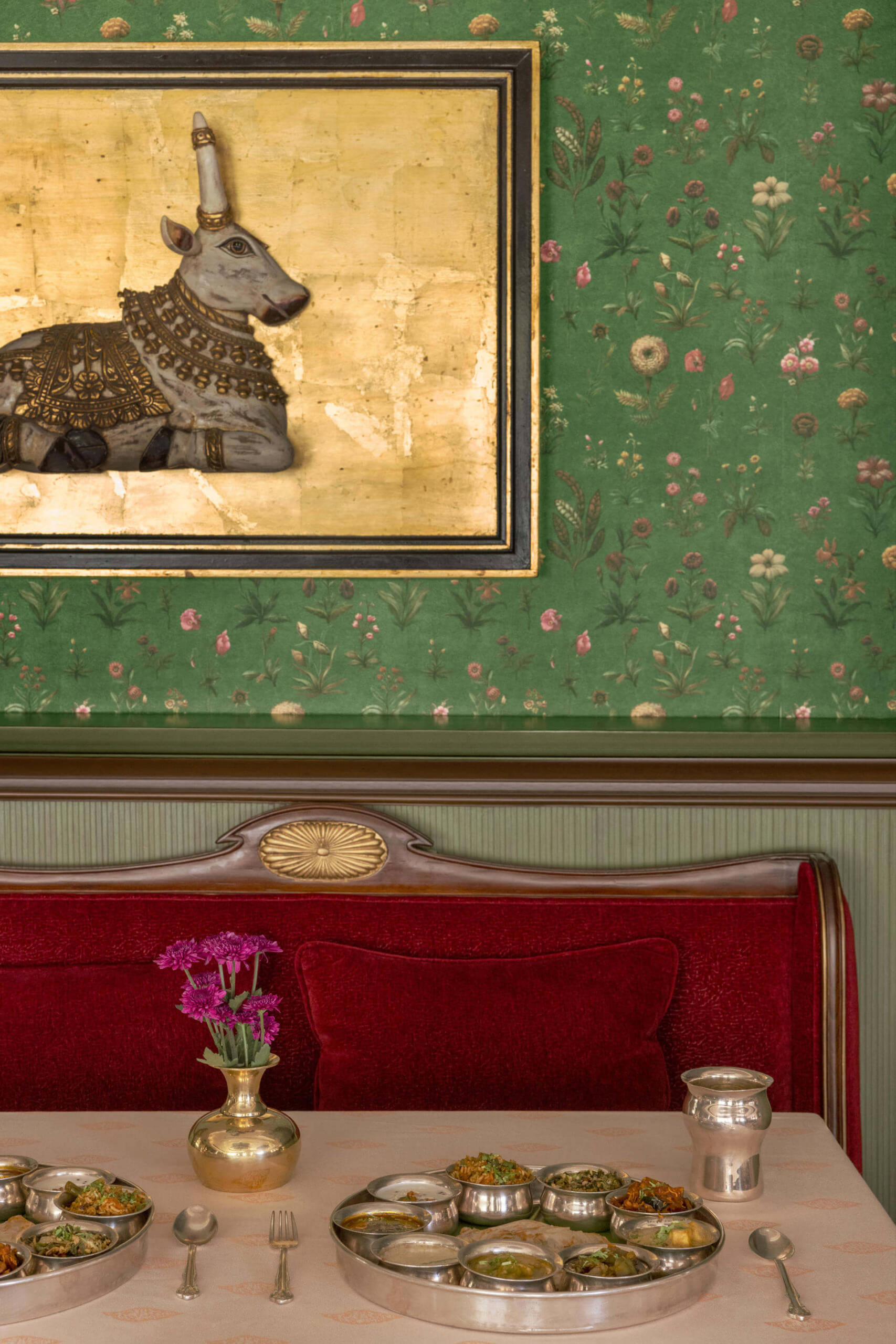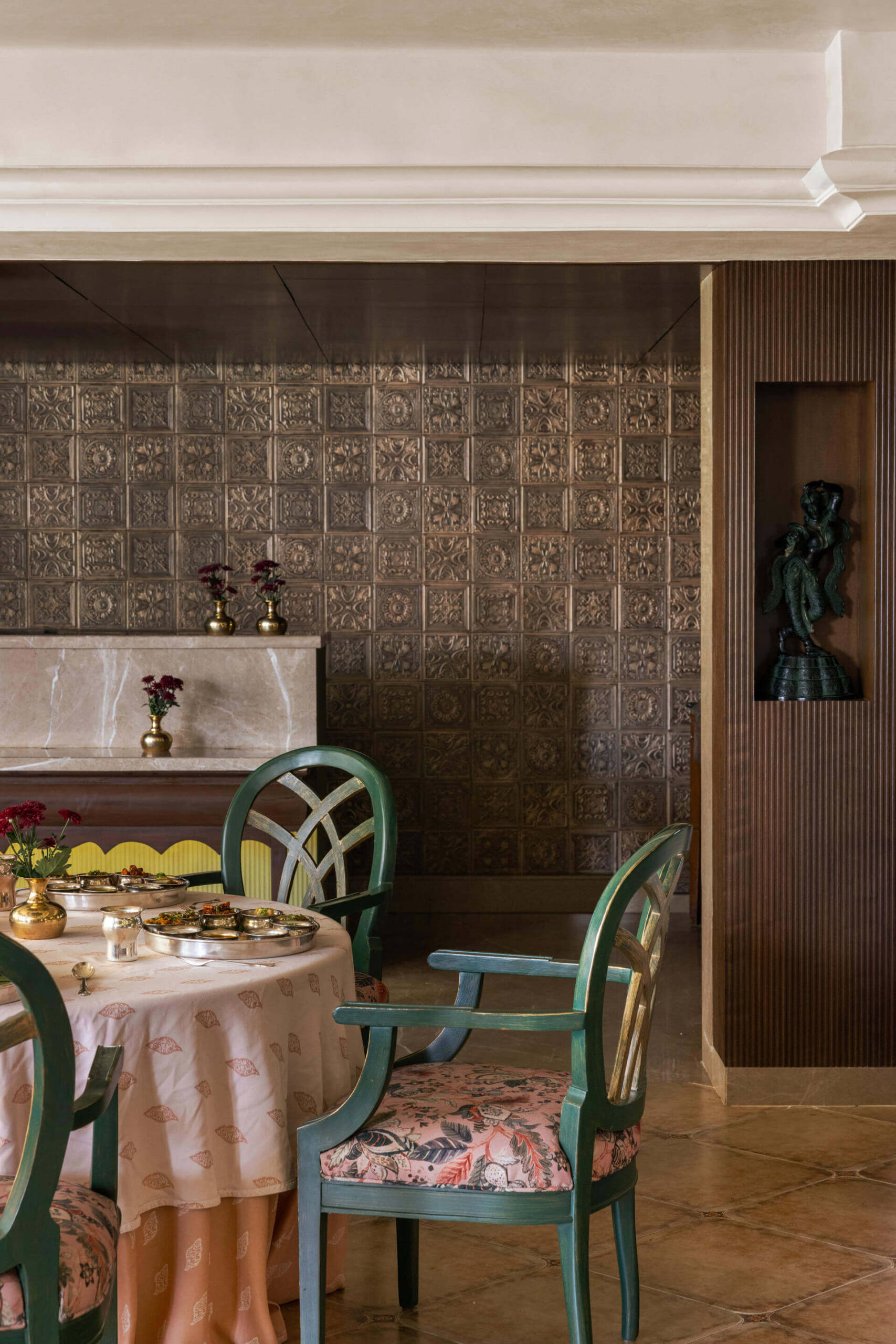 Reimagined with temple-inspired grandeur, Dakshin at WH Devee Grand Bay blends tradition with refined maximalism. Rich wood, brass accents, and Tanjore art create a cultural tapestry, while curated details—from carved Nandis to silver tableware—celebrate South Indian heritage in a vibrant, contemporary setting.