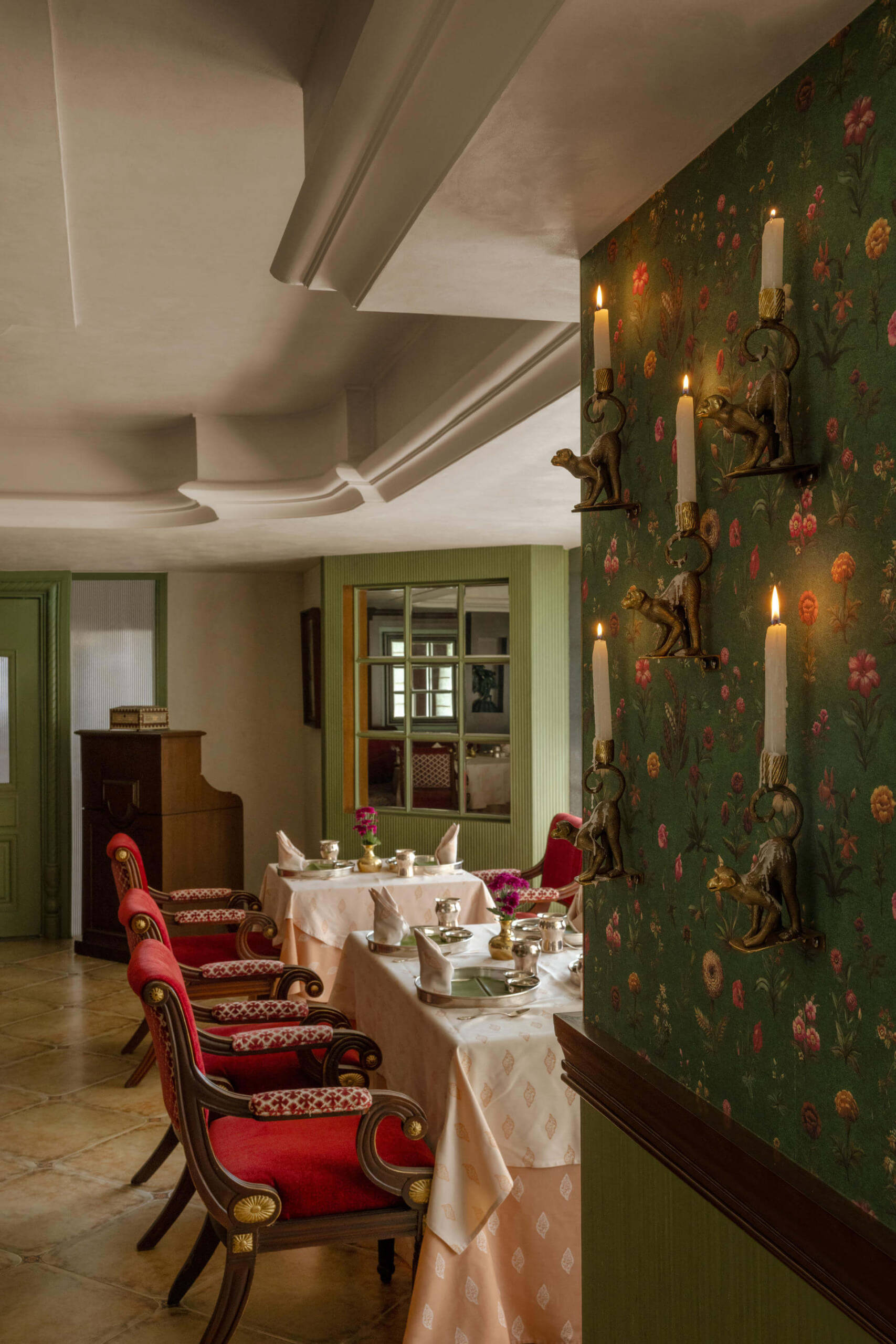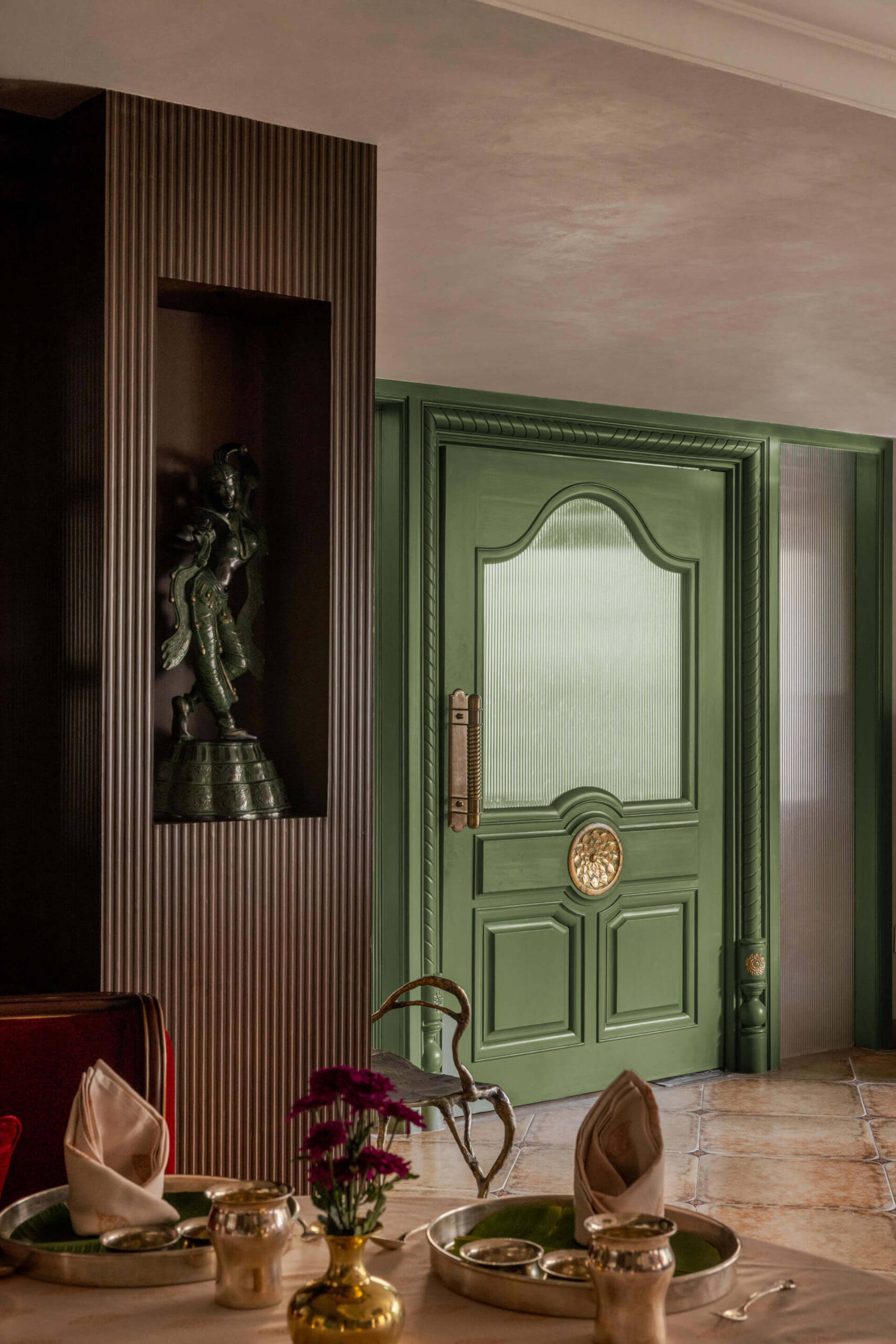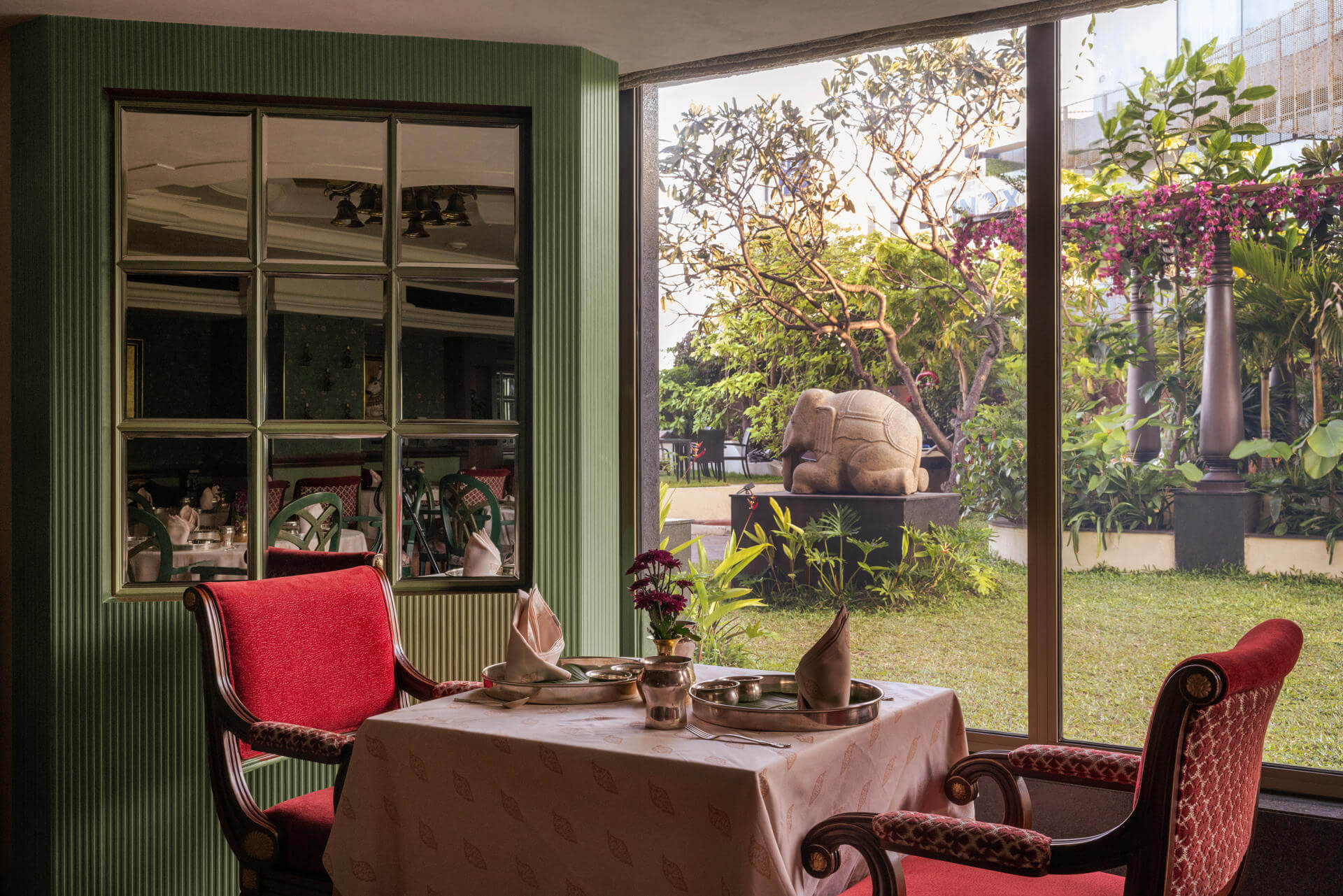Reimagined with temple-inspired grandeur, Dakshin at WH Devee Grand Bay blends tradition with refined maximalism. Rich wood, brass accents, and Tanjore art create a cultural tapestry, while curated details—from carved Nandis to silver tableware—celebrate South Indian heritage in a vibrant, contemporary setting.