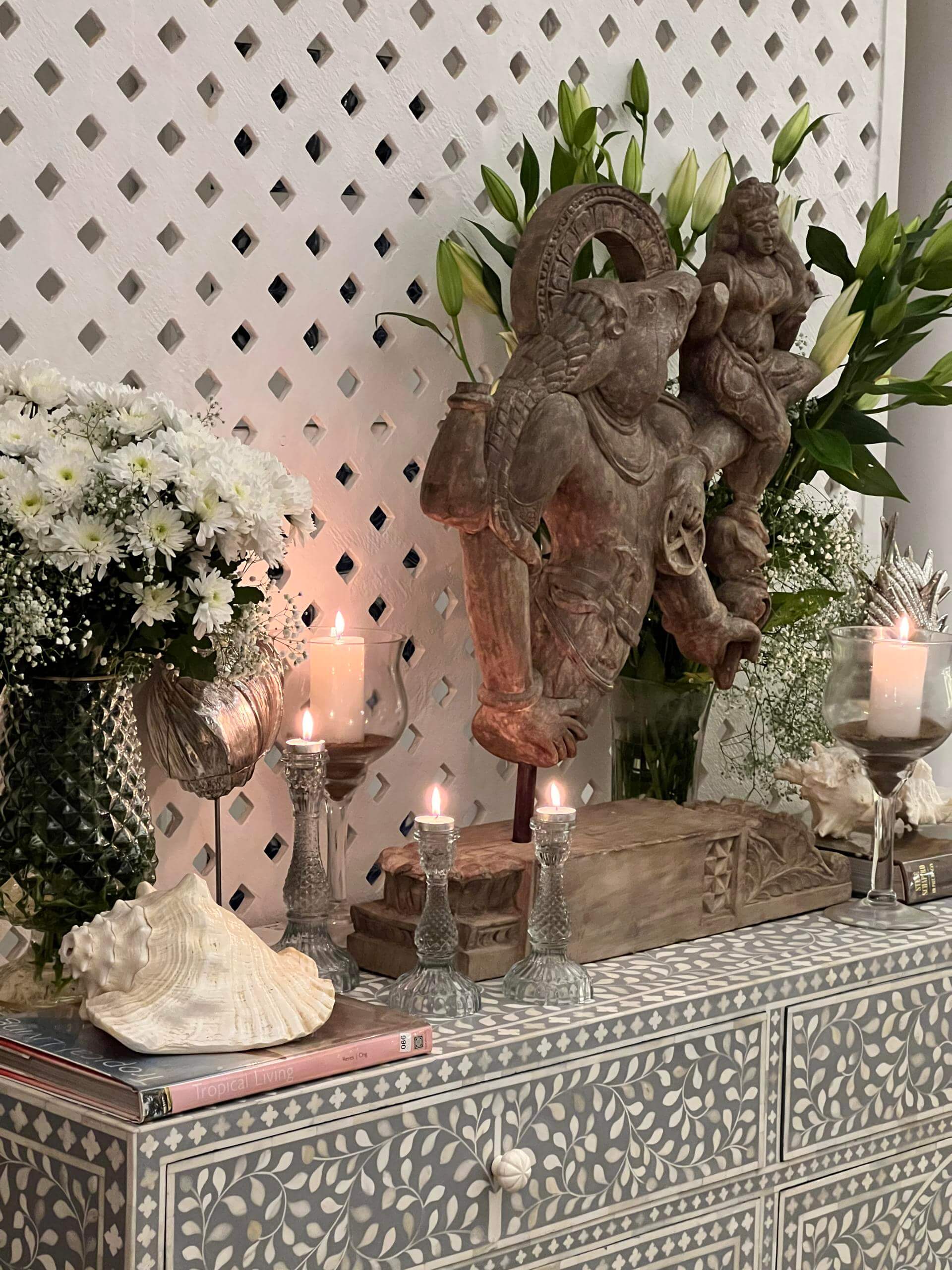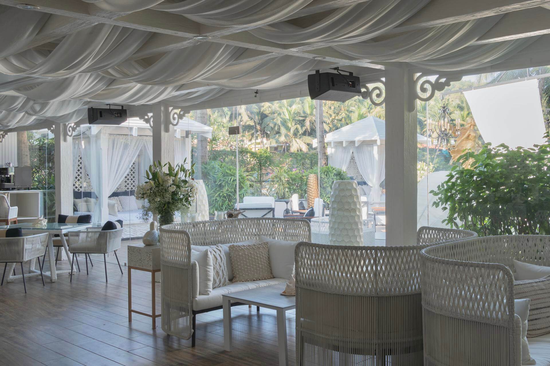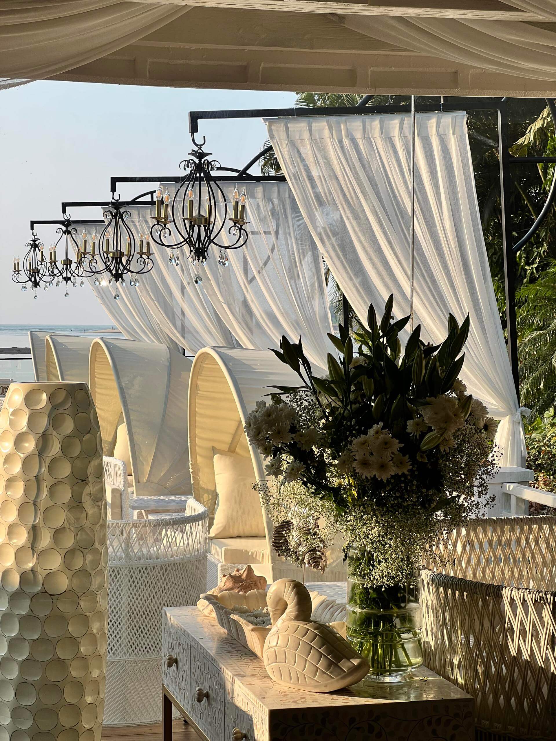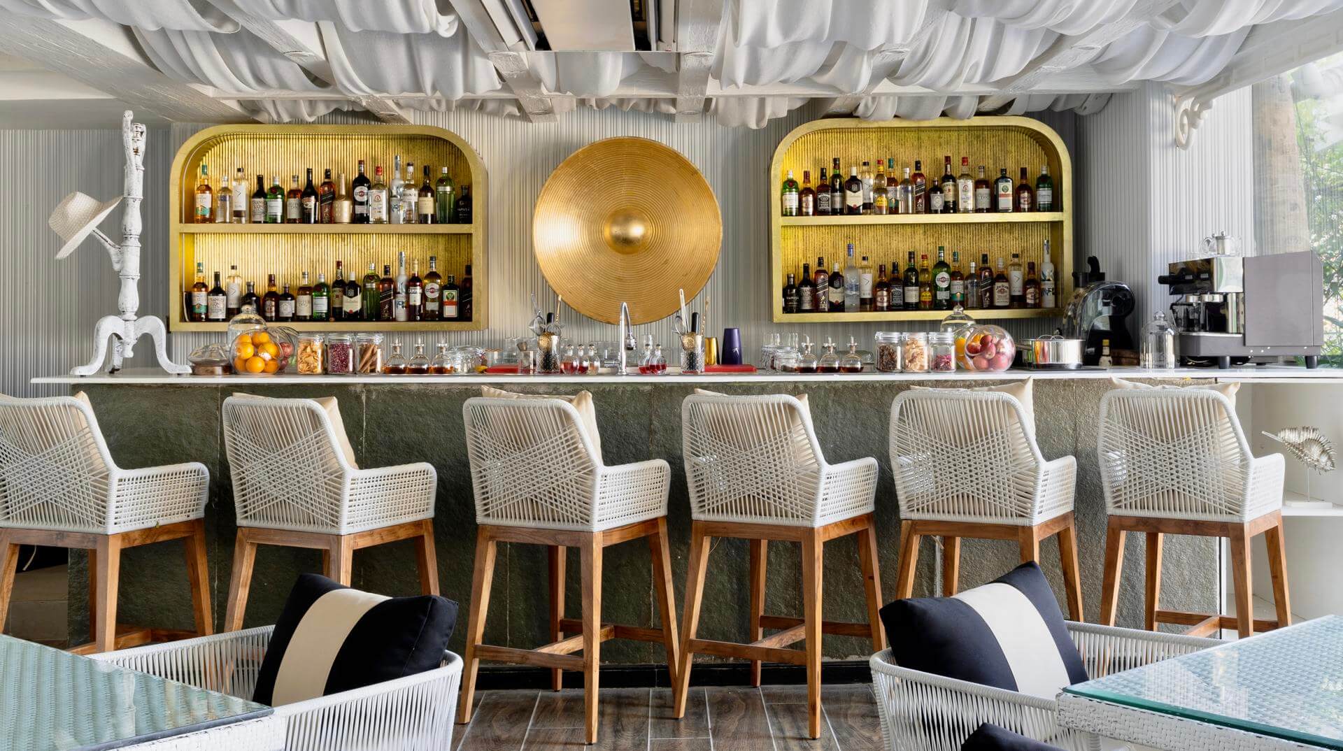 Velvet fabrics add to the glam factor while the brass front island bar takes centre and smaller elements of brass are spotted all over the furniture and other wall panels! The intention was to keep it clean, chic and classy yet with a fun factor to woo the guests!