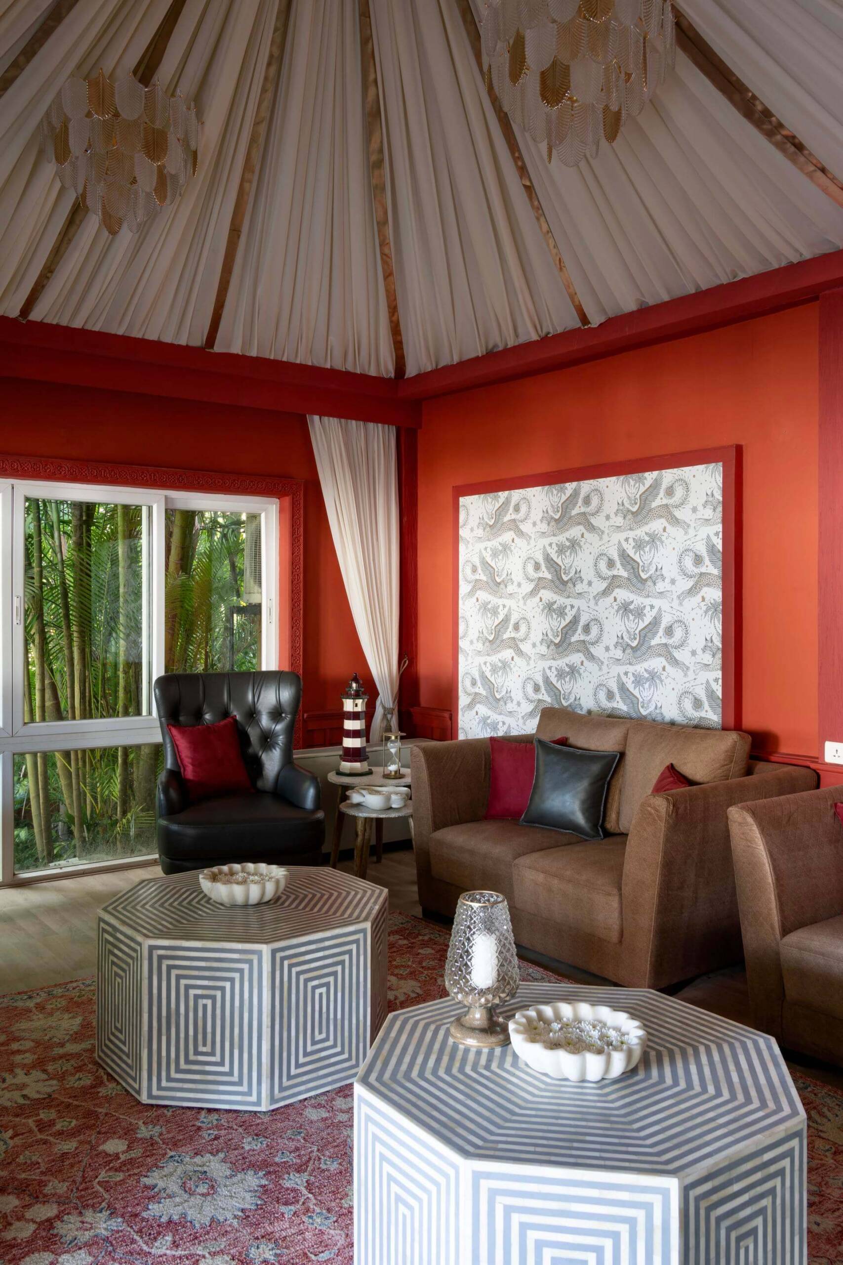 This 4,500 square feet lounge bar in the heart of Hyderabad seats 90 people and goes by the name of Farasha, meaning ‘butterfly’. The name itself formed our inspiration.