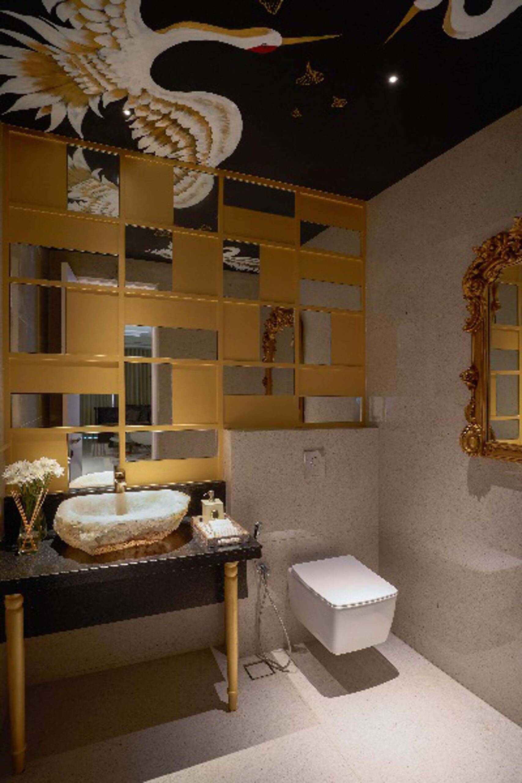 The flooring was a meticulous labor of love that went through many trial and errors to get to this stage! The standard ash grey stone was procured in large sizes, shaped and chiseled in the factory, finished multiple times on all sides with a machine and with sealant and then laid over a few months and finally filled with a white epoxy in between!
