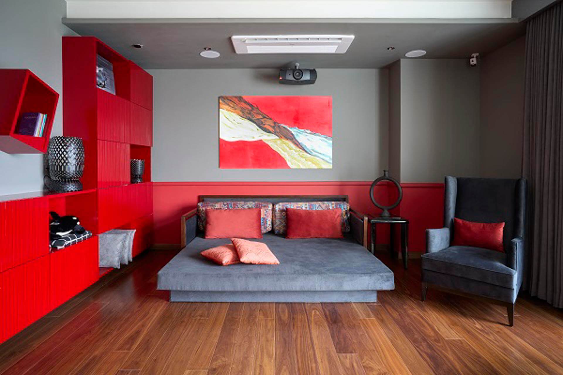 The space was a 3 bedroom, 2000 square feet standard apartment that we had to fashion into a one bedroom pad for the clients that lived right next door and wanted to use this space as a getaway!