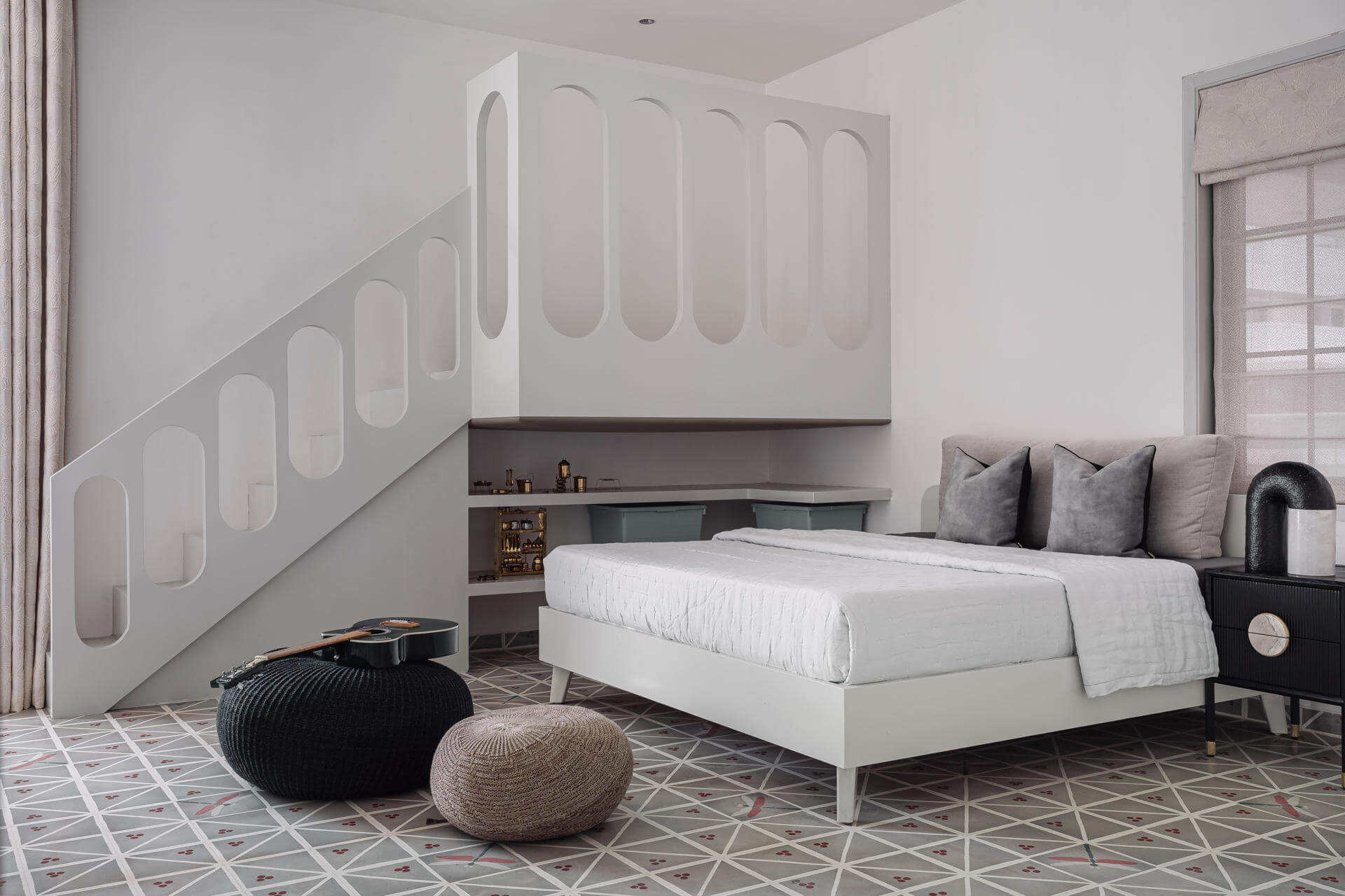 Likewise, the walls are not your generic texture! The undulations and levels have been achieved at the time of doing the civil work itself. Layers of cement, innumerable site visits to achieve the shapes and many costs of plaster of Paris and texture material later, we managed to achieve a finish that looks natural to the eye and soft to the touch!