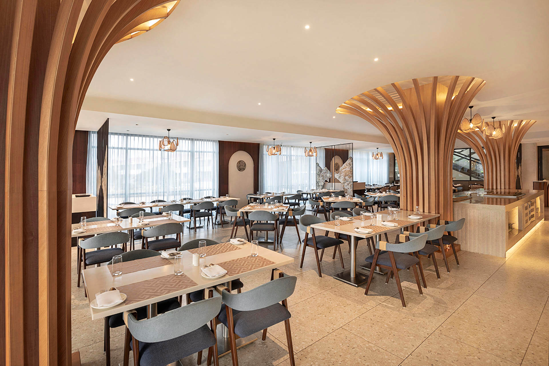 Likewise, the walls are not your generic texture! The undulations and levels have been achieved at the time of doing the civil work itself. Layers of cement, innumerable site visits to achieve the shapes and many costs of plaster of Paris and texture material later, we managed to achieve a finish that looks natural to the eye and soft to the touch!