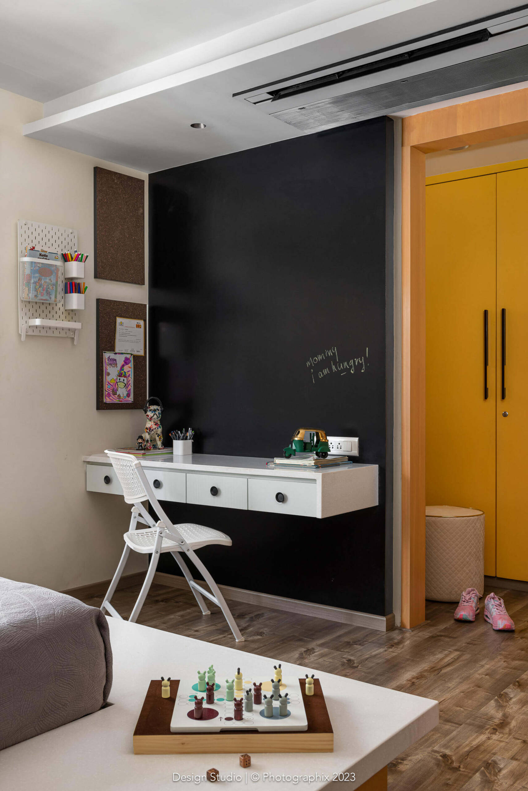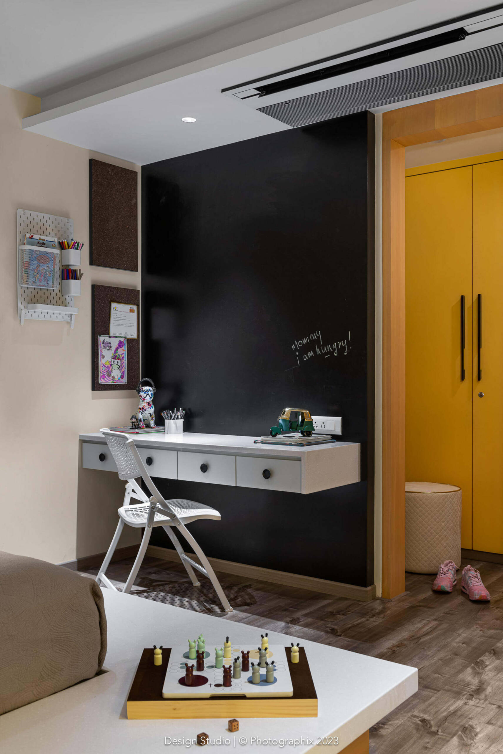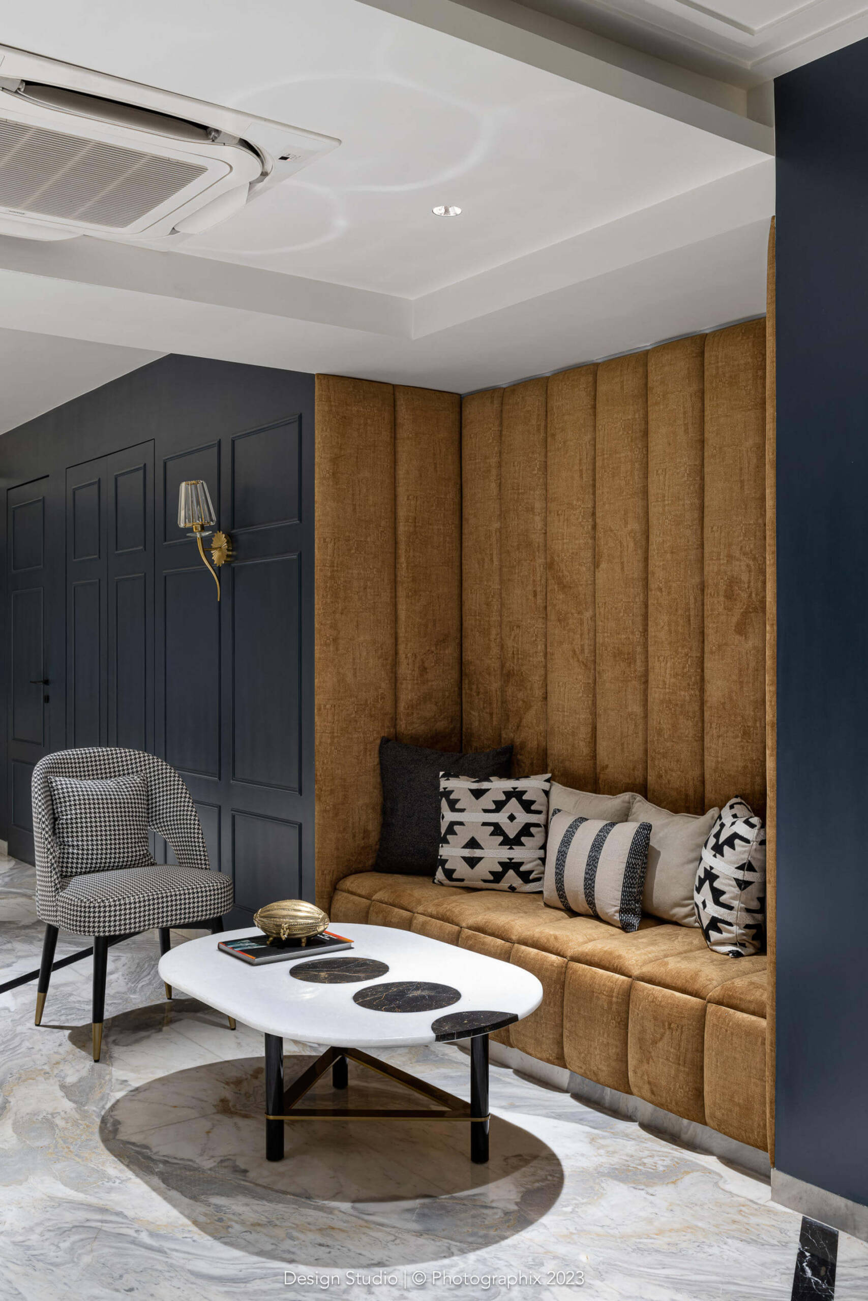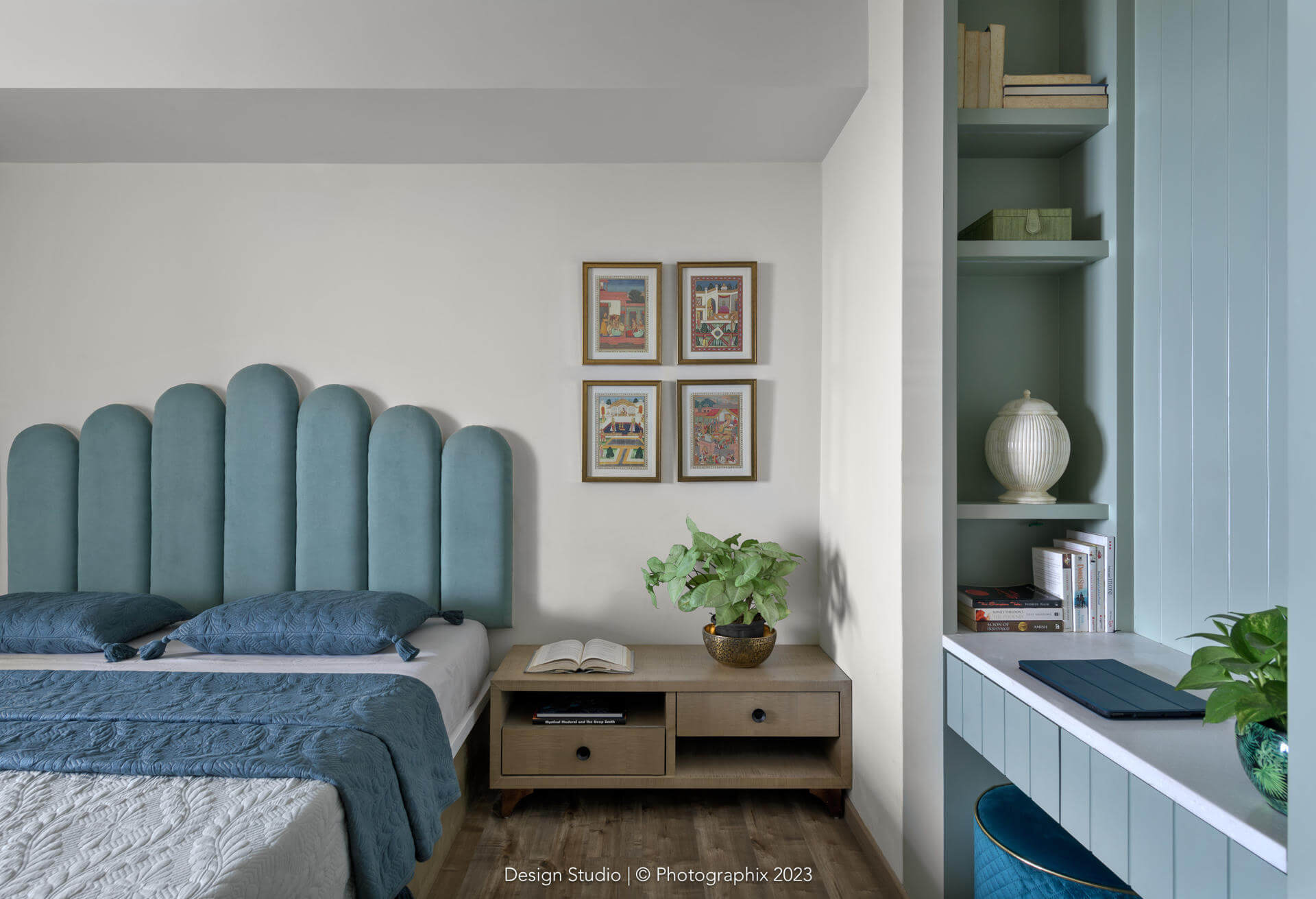 Likewise, the walls are not your generic texture! The undulations and levels have been achieved at the time of doing the civil work itself. Layers of cement, innumerable site visits to achieve the shapes and many costs of plaster of Paris and texture material later, we managed to achieve a finish that looks natural to the eye and soft to the touch!
