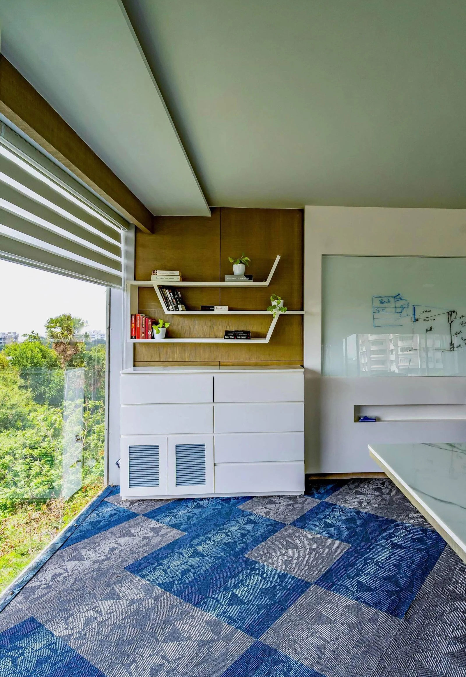 The classroom was meticulously crafted to serve as a catalyst for cognitive engagement without overwhelming stimulation. Contrary to the vibrant play equipment often found in classrooms, we opted for a subdued palette. This choice allowed ample room for the school’s own colourful additions to seamlessly integrate with the environment. The abstract cactus panelling, is tufted and serves a dual purpose – aesthetics and protection for kids. A mini amphitheatre and an indoor treehouse delightfully engage the young minds, creating an enchanting learning environment. The indoor treehouse, irresistibly inviting, becomes the first stop for the kids as they explore and play. Meticulous detailing brings a wonderland vibe to Totville’s early childhood education centre.