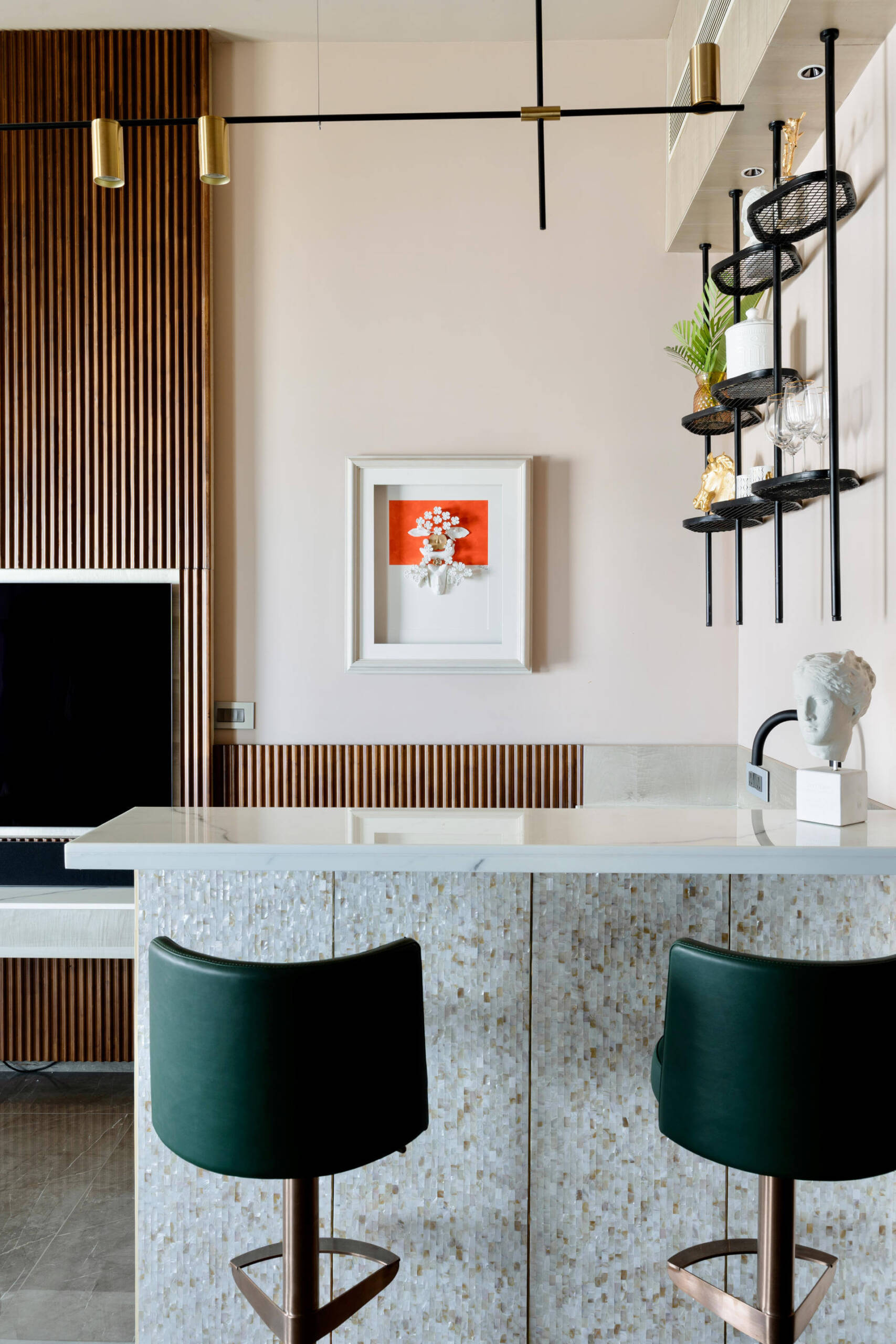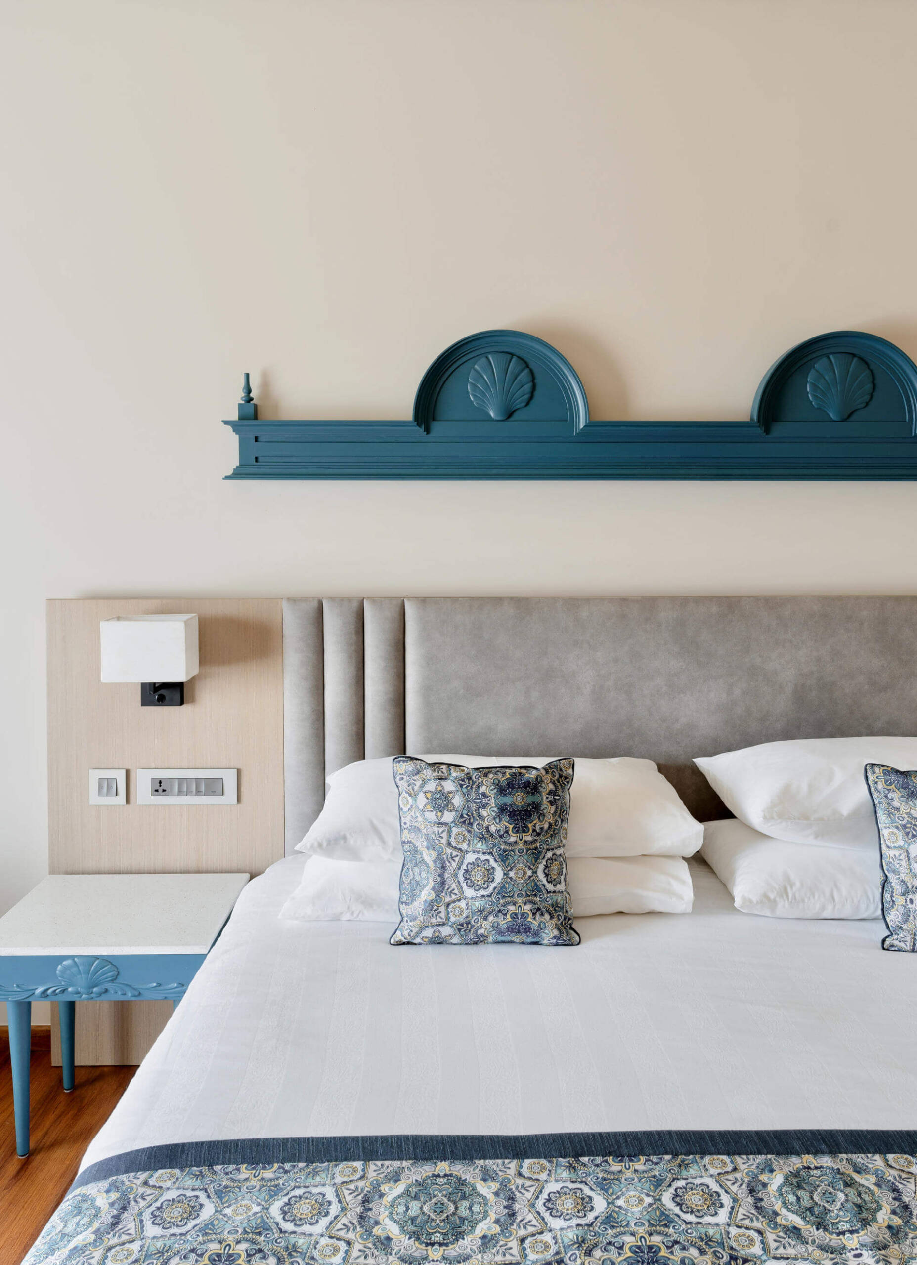 Likewise, the walls are not your generic texture! The undulations and levels have been achieved at the time of doing the civil work itself. Layers of cement, innumerable site visits to achieve the shapes and many costs of plaster of Paris and texture material later, we managed to achieve a finish that looks natural to the eye and soft to the touch!