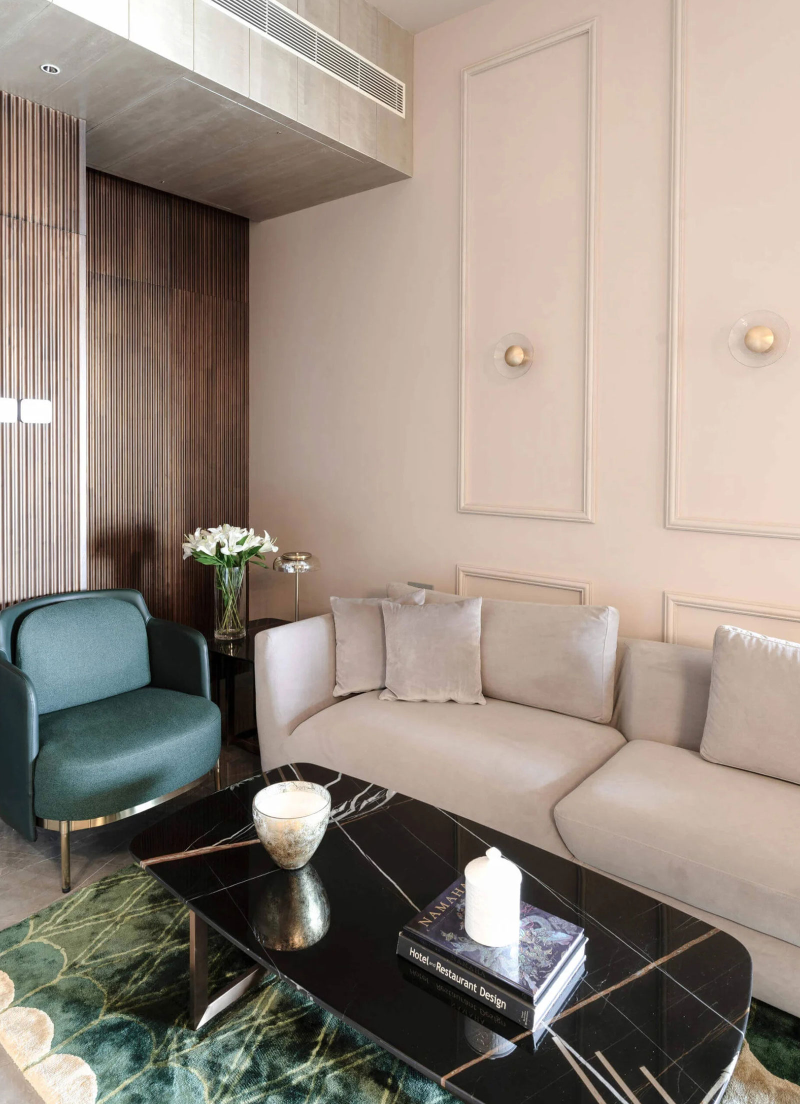 The space was a 3 bedroom, 2000 square feet standard apartment that we had to fashion into a one bedroom pad for the clients that lived right next door and wanted to use this space as a getaway!
