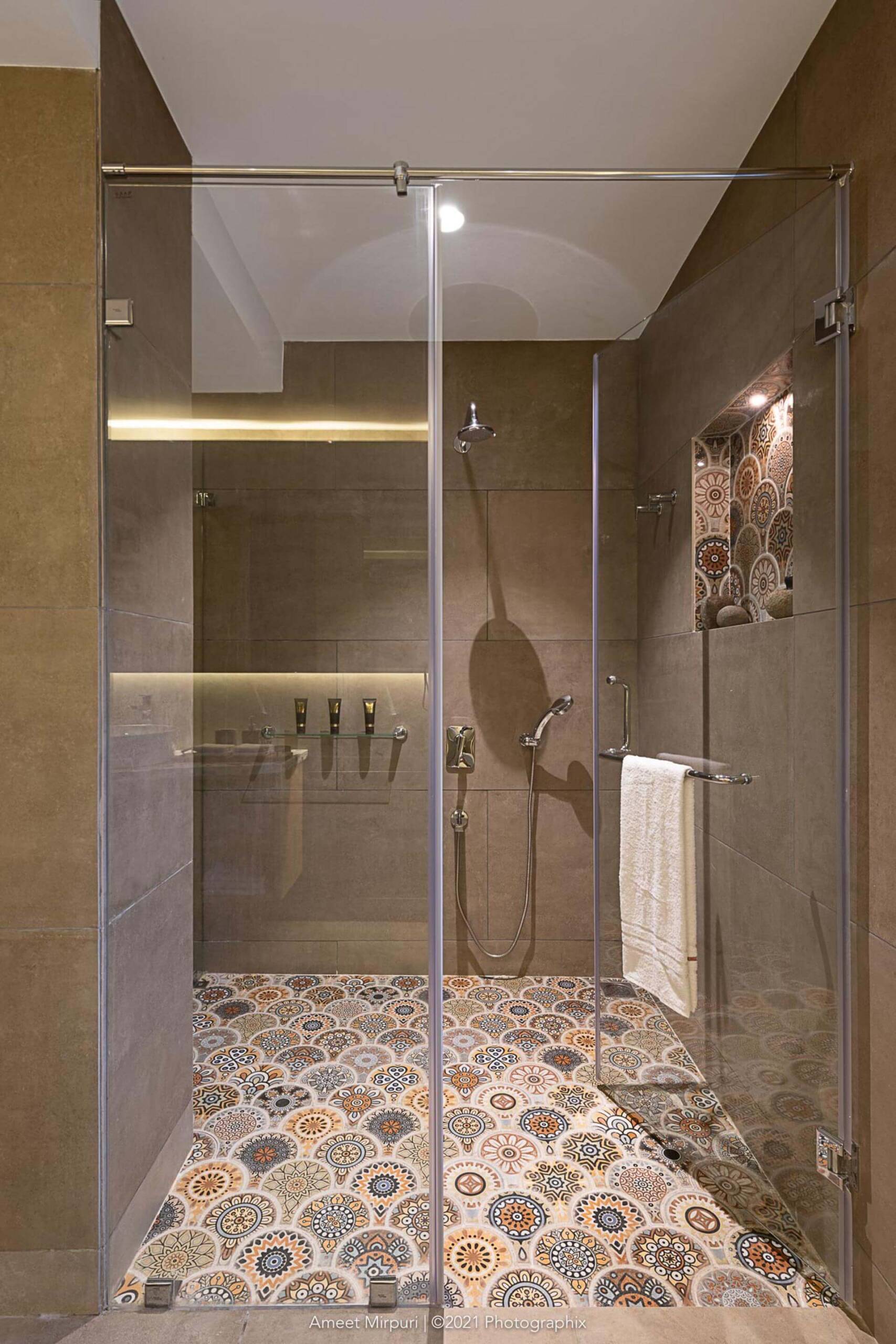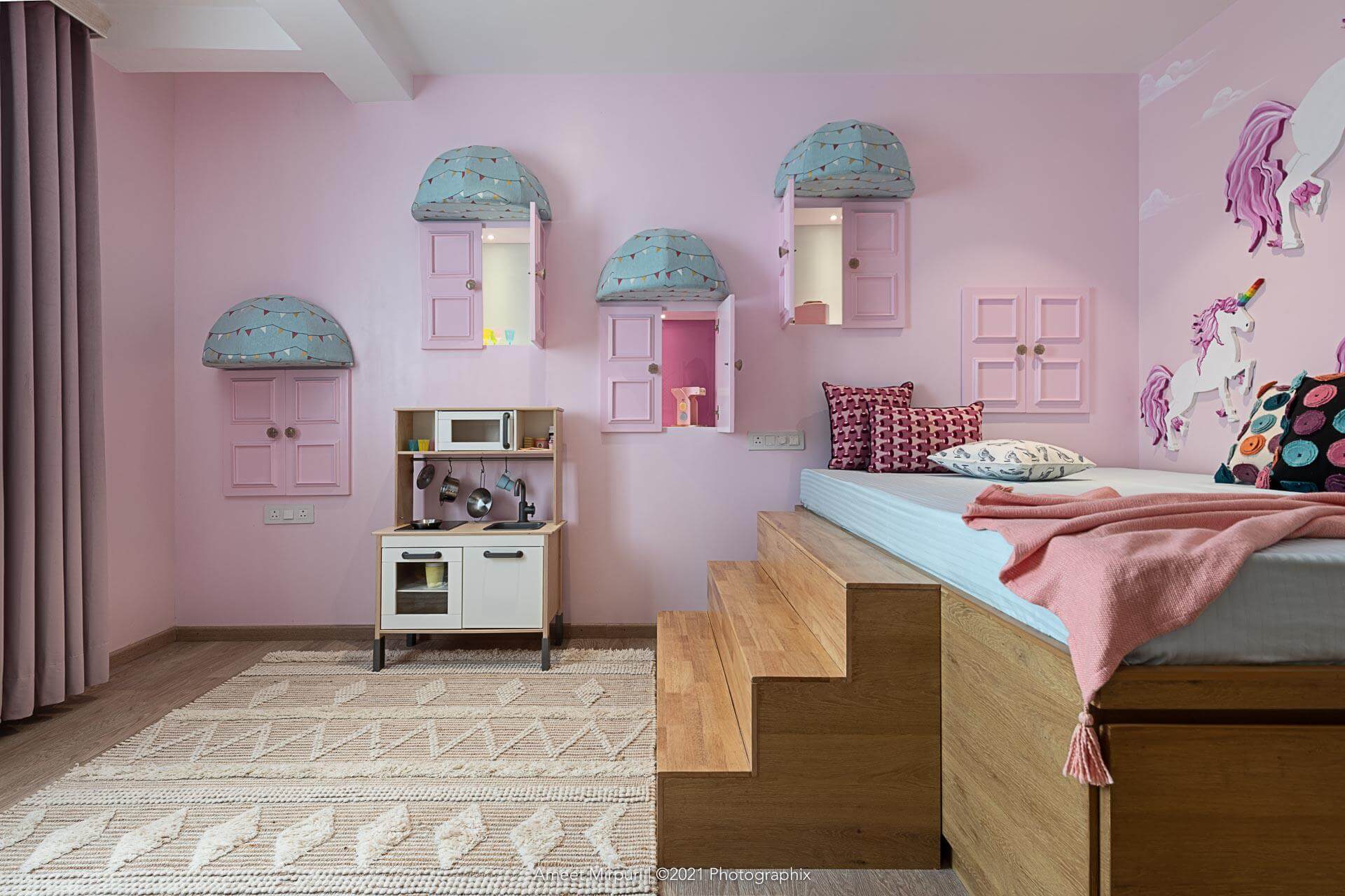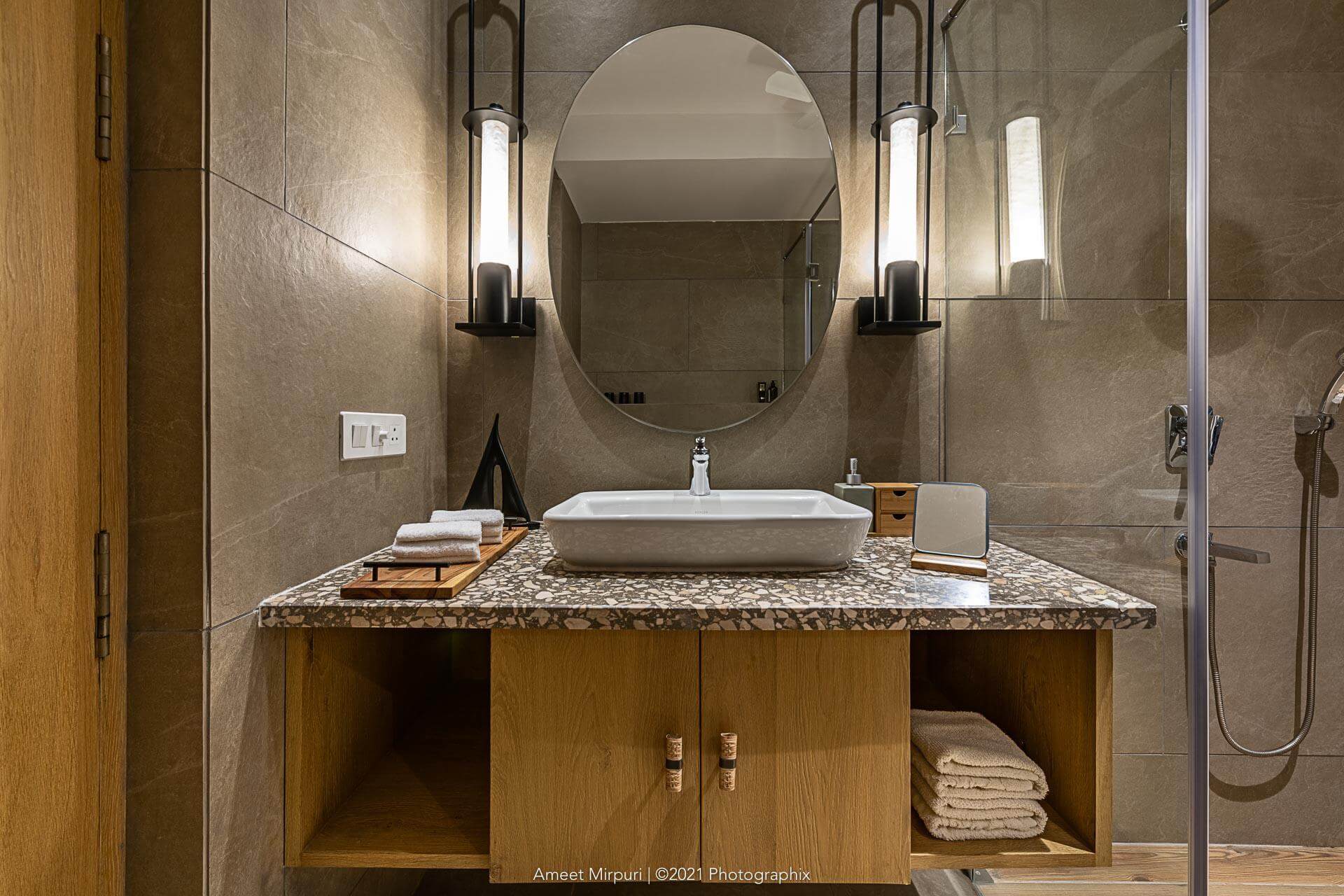Likewise, the walls are not your generic texture! The undulations and levels have been achieved at the time of doing the civil work itself. Layers of cement, innumerable site visits to achieve the shapes and many costs of plaster of Paris and texture material later, we managed to achieve a finish that looks natural to the eye and soft to the touch!