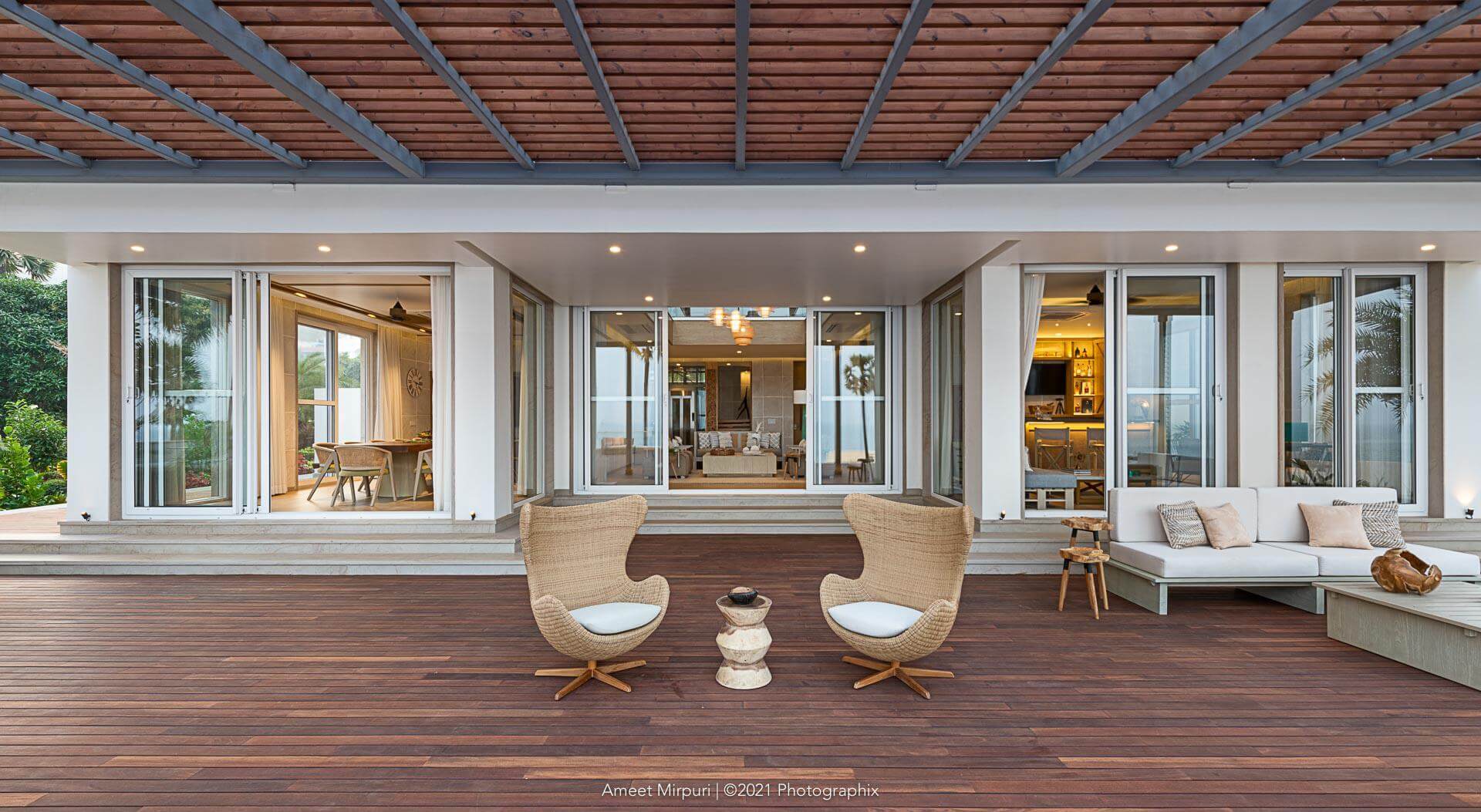 The flooring was a meticulous labor of love that went through many trial and errors to get to this stage! The standard ash grey stone was procured in large sizes, shaped and chiseled in the factory, finished multiple times on all sides with a machine and with sealant and then laid over a few months and finally filled with a white epoxy in between!
