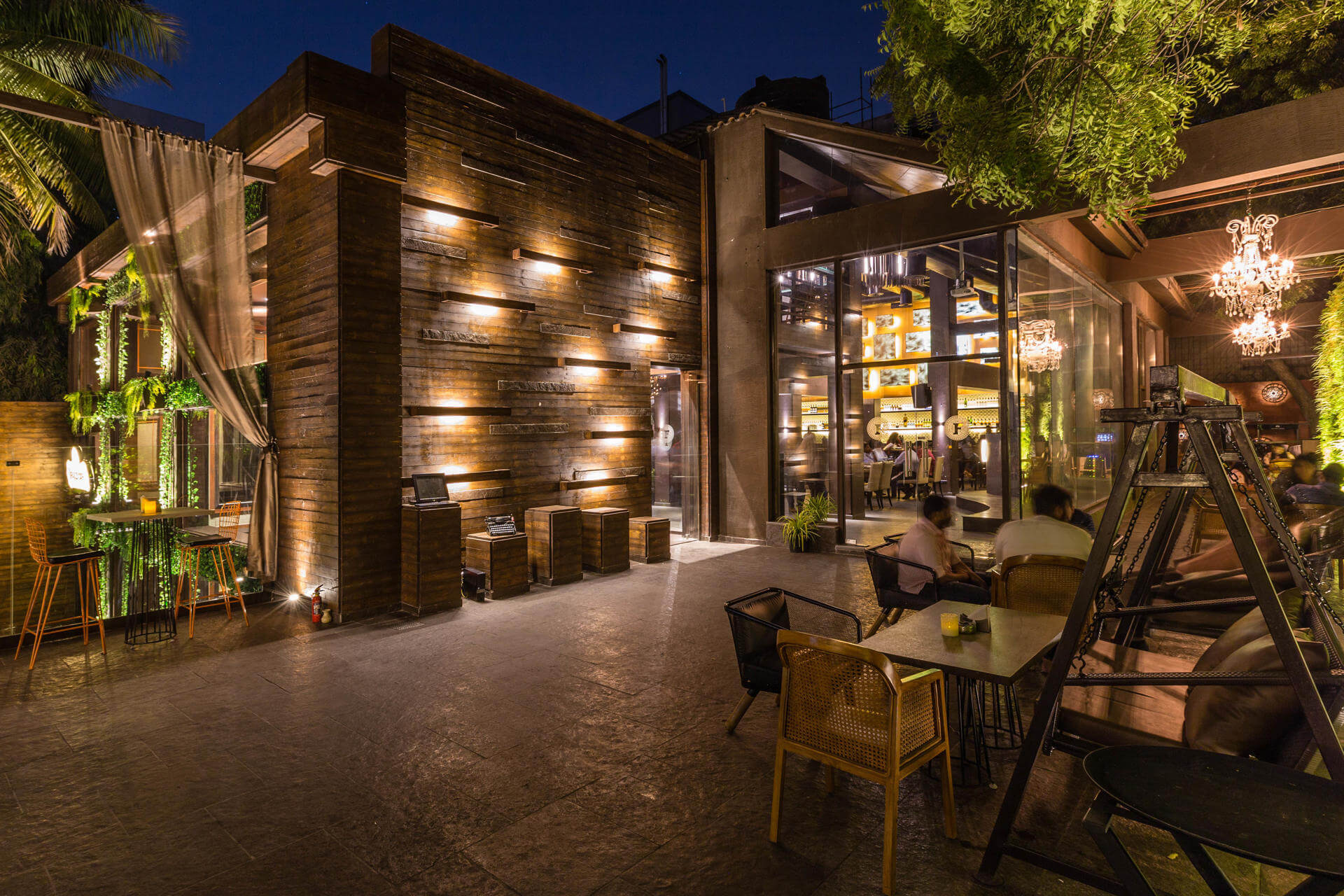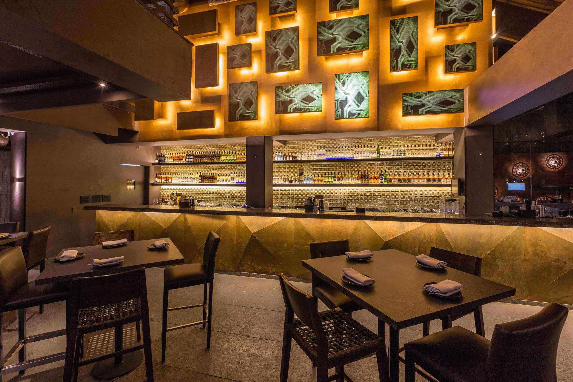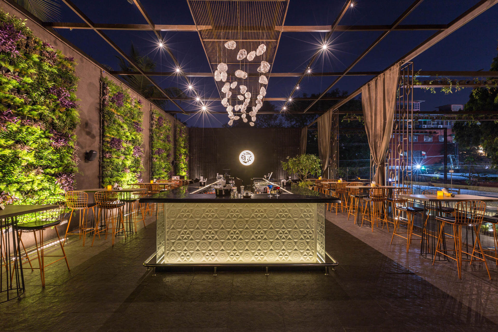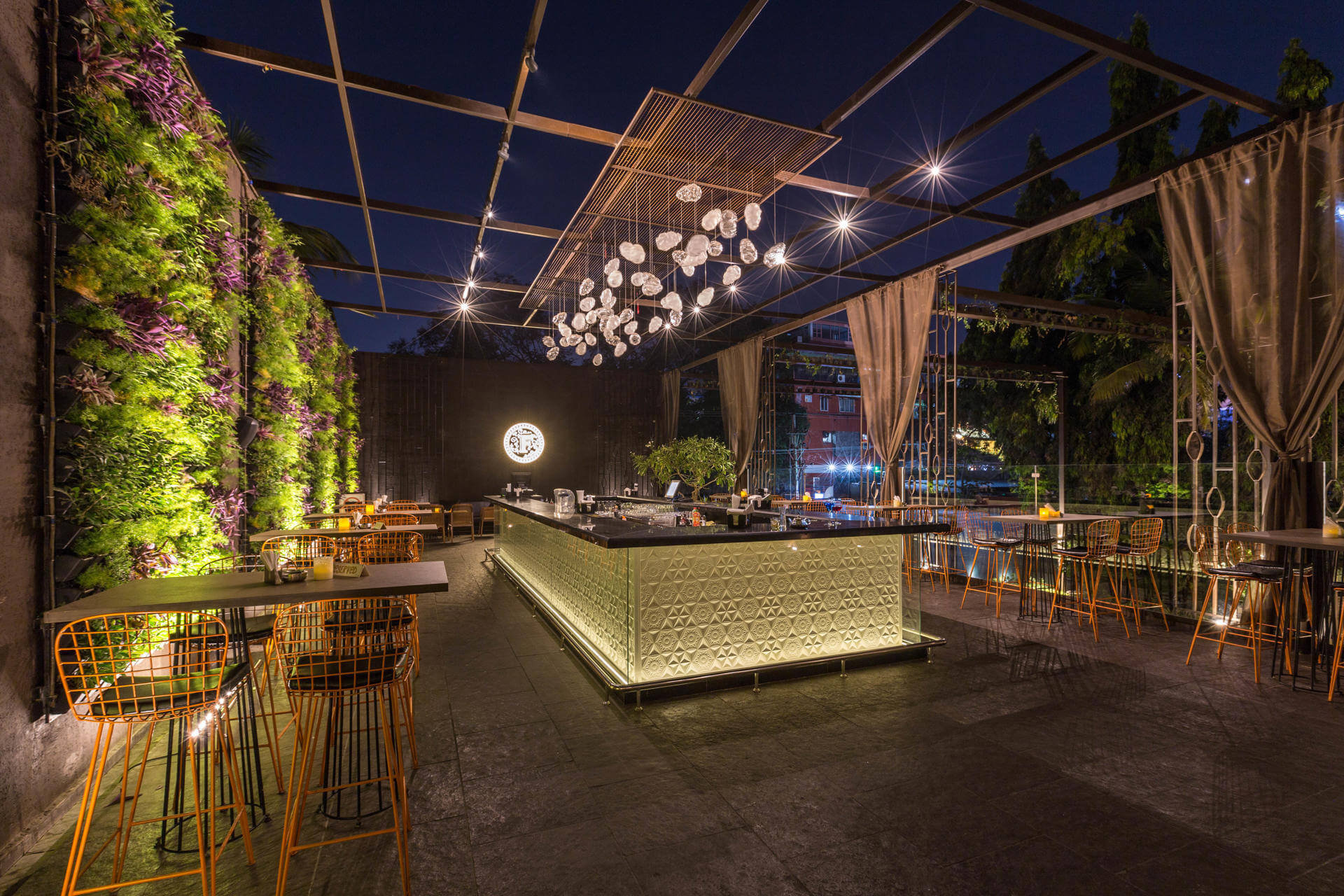 This 4,500 square feet lounge bar in the heart of Hyderabad seats 90 people and goes by the name of Farasha, meaning ‘butterfly’. The name itself formed our inspiration.