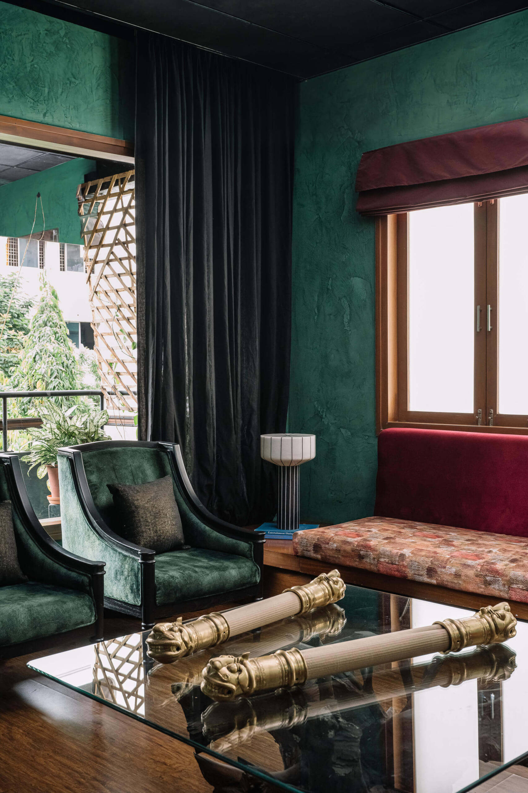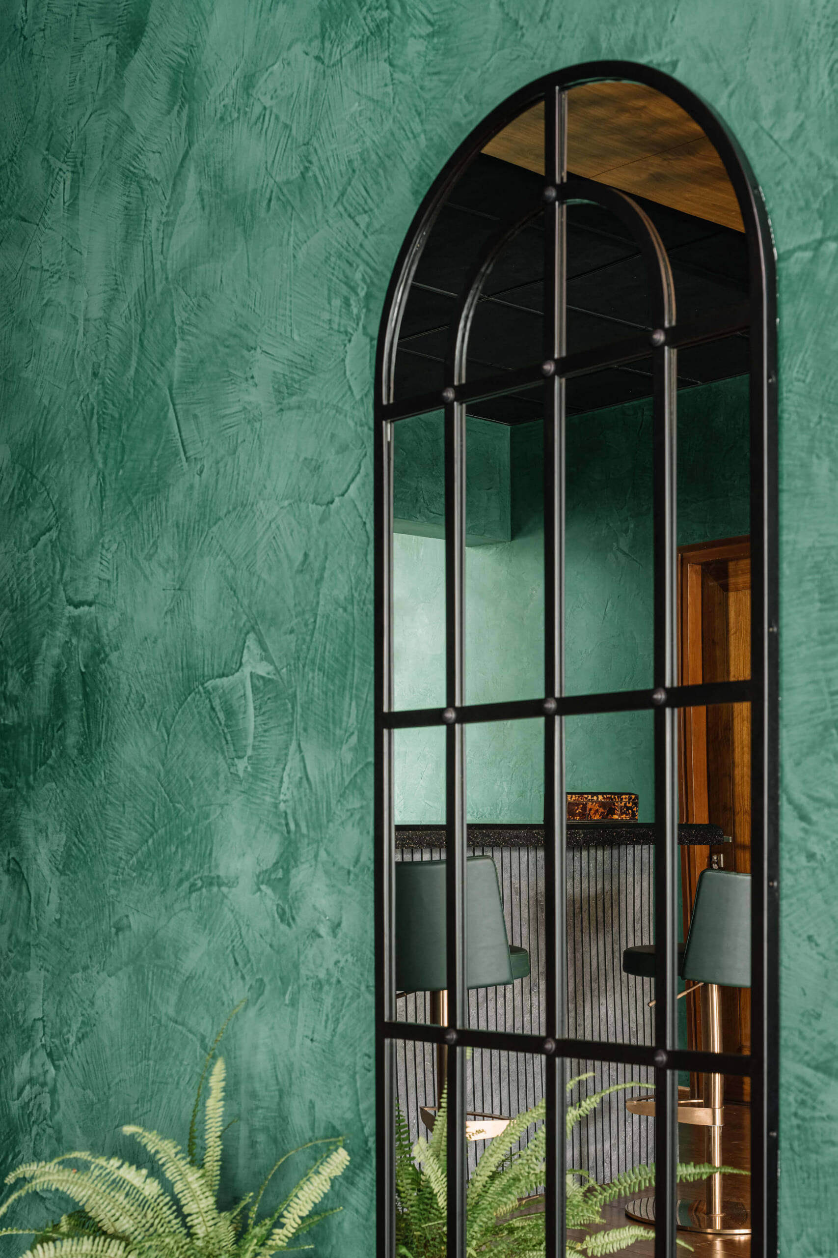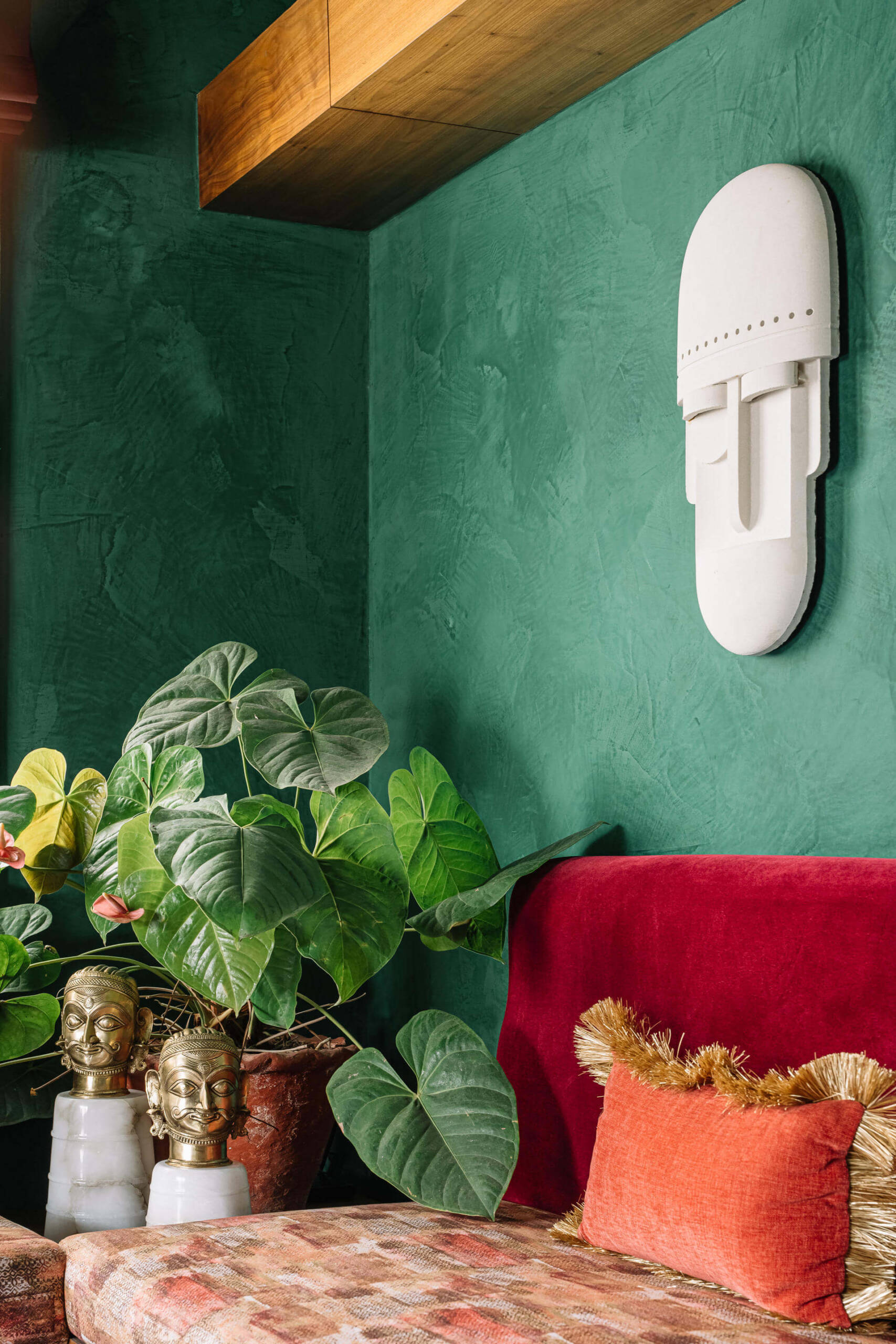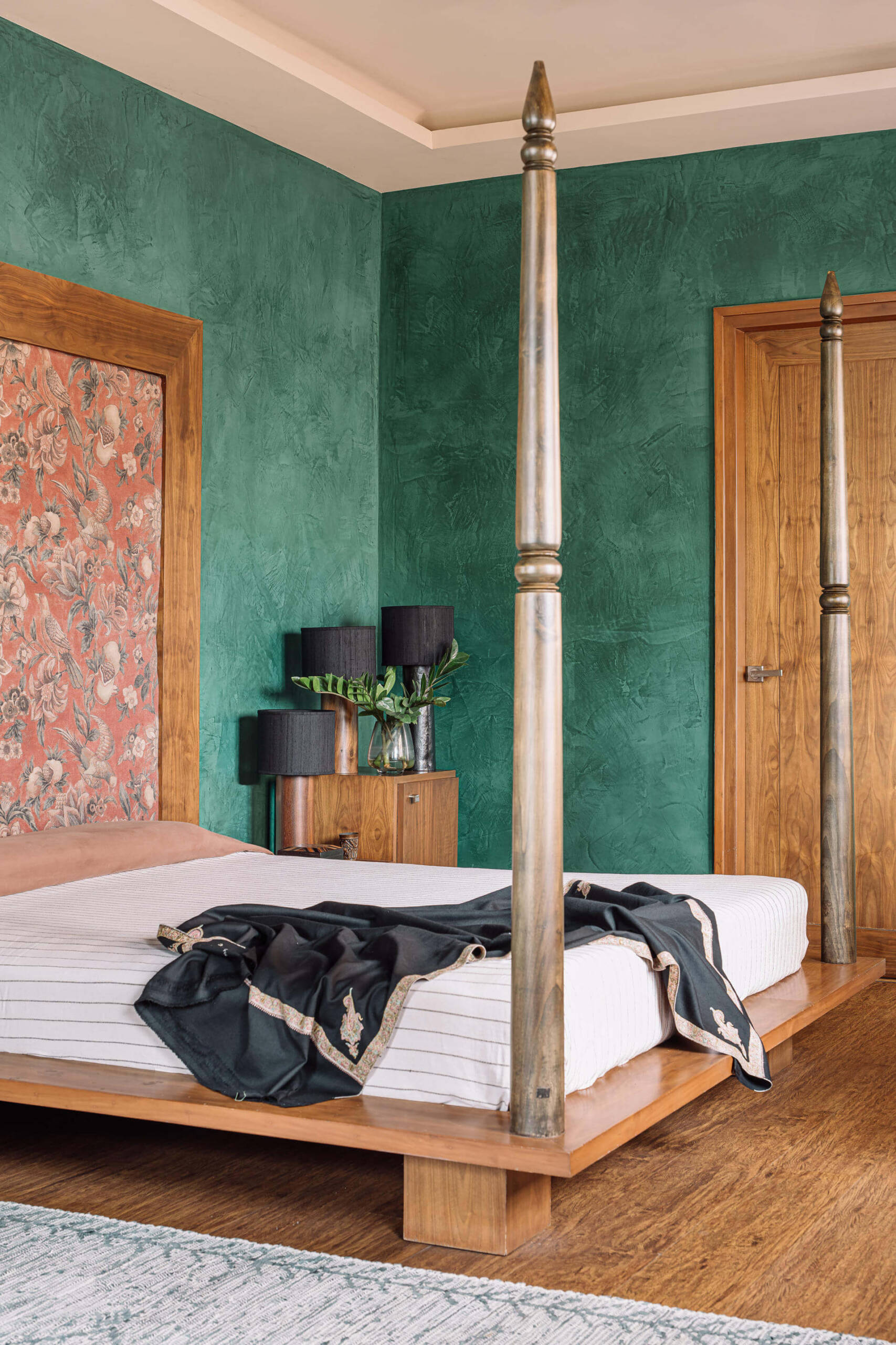 A deeply personal, joy-filled sanctuary—this home reflects bold individuality, moody emerald walls, and story-rich décor. Crafted with sentimental materials, indirect lighting, and sensual contrasts, every detail sparks conversation and emotion. From cyclone-salvaged wood to dramatic textures, the space is a curated celebration of memory, mood, and meaning.