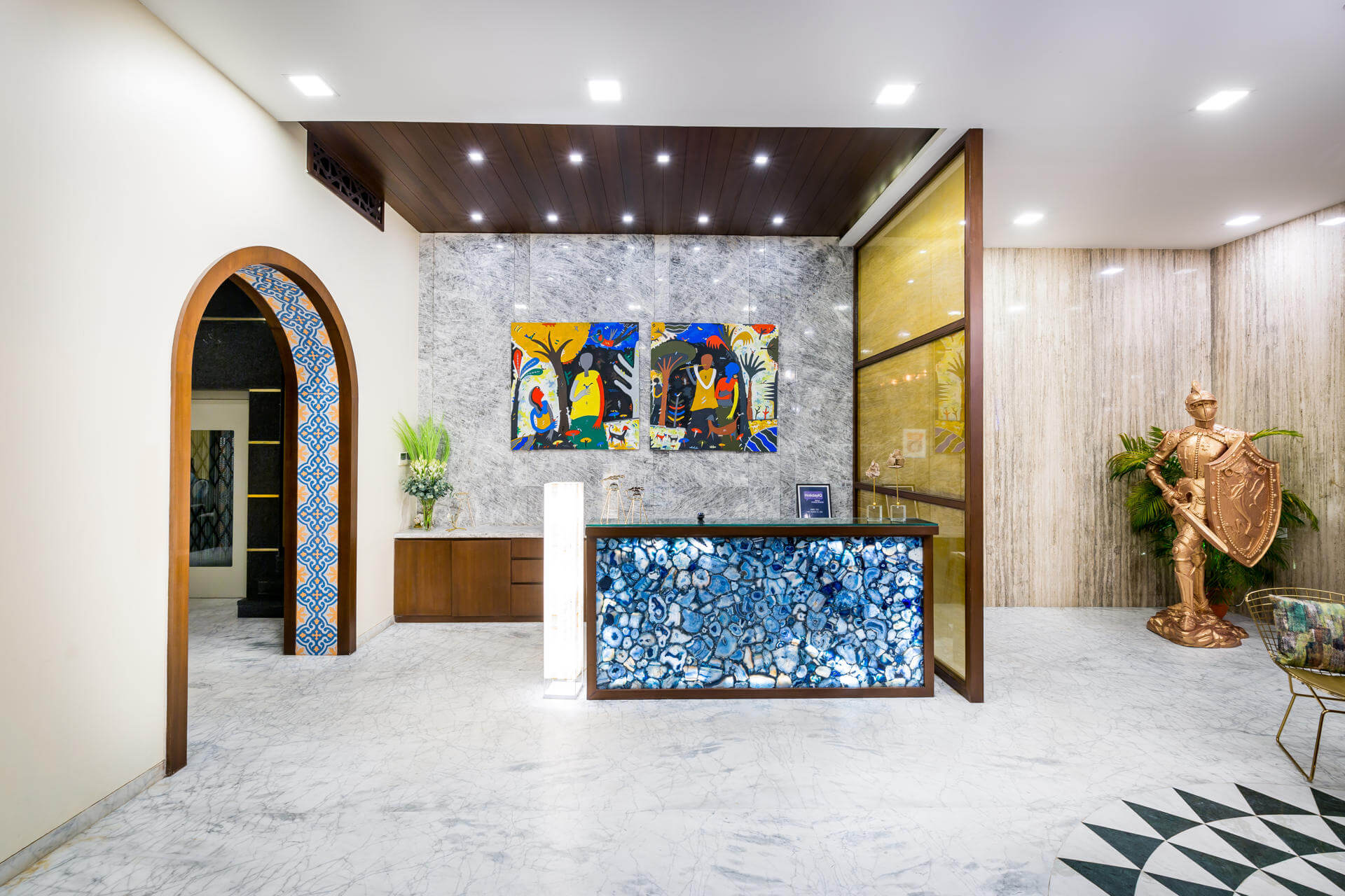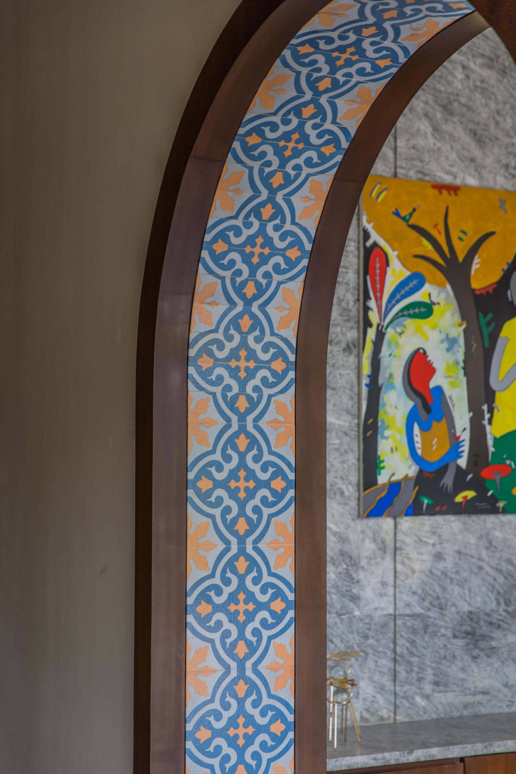 Likewise, the walls are not your generic texture! The undulations and levels have been achieved at the time of doing the civil work itself. Layers of cement, innumerable site visits to achieve the shapes and many costs of plaster of Paris and texture material later, we managed to achieve a finish that looks natural to the eye and soft to the touch!
