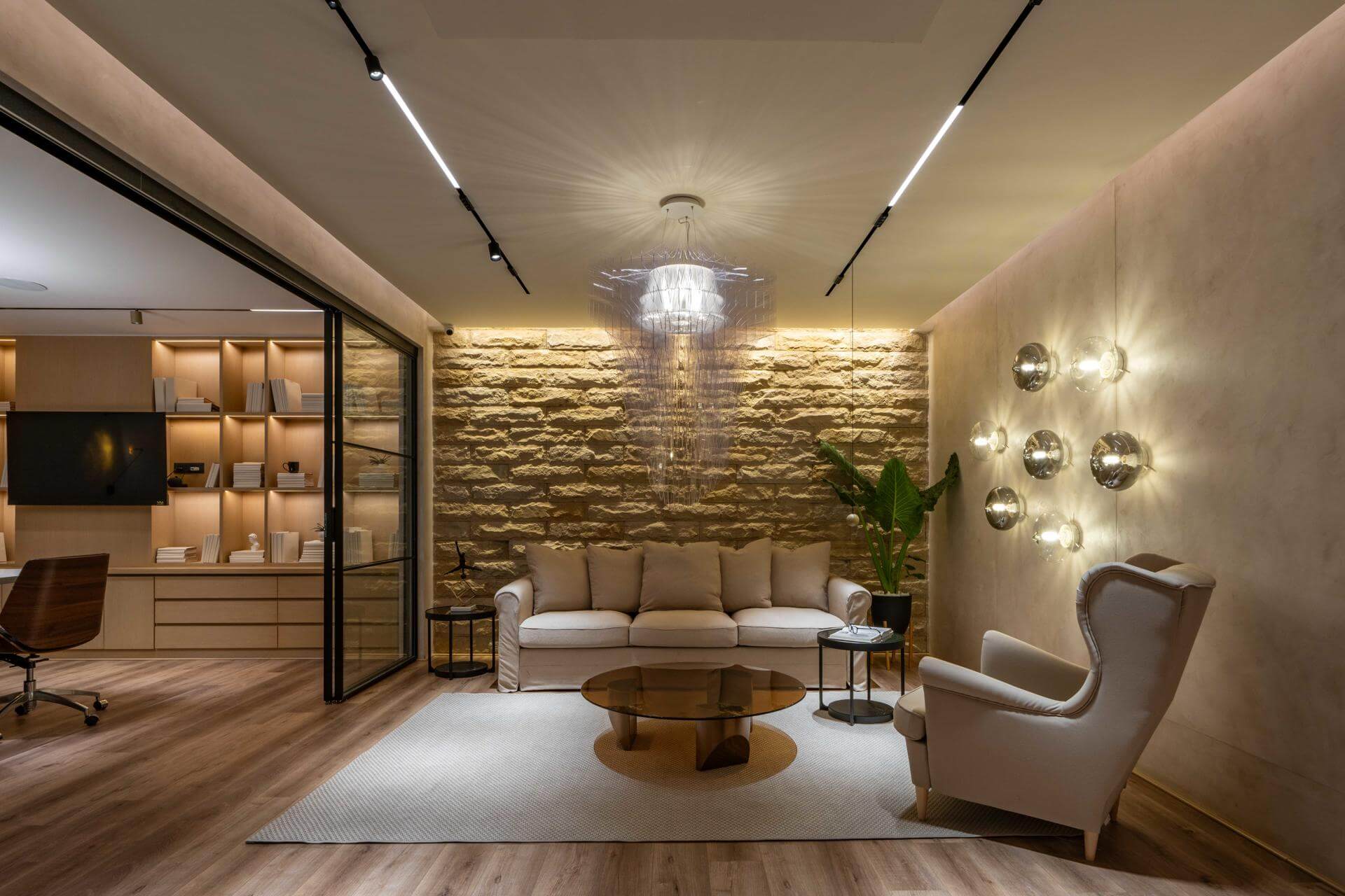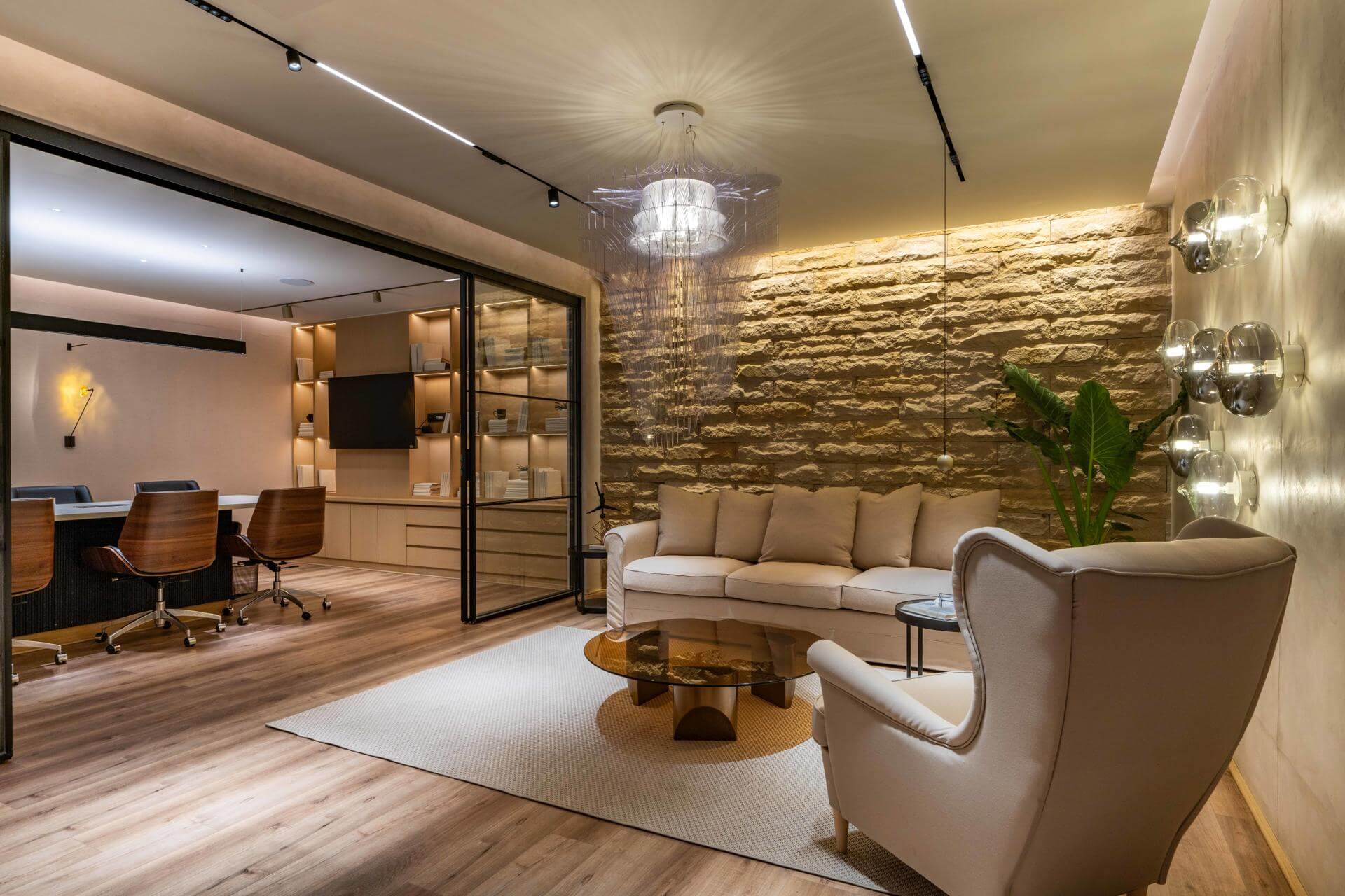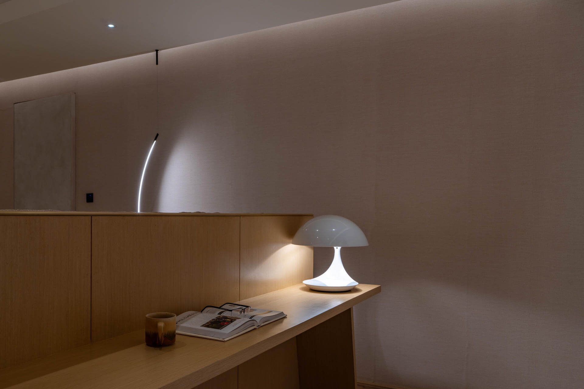 Custom wallpapers bring the fun and arty element to the space and our piece de resistance are the four custom made richly embroidered fabric art pieces that adorn the walls. The central ceiling glass installation is again custom made to the space with the blown glass adding a fresh take on traditional Asian motifs.