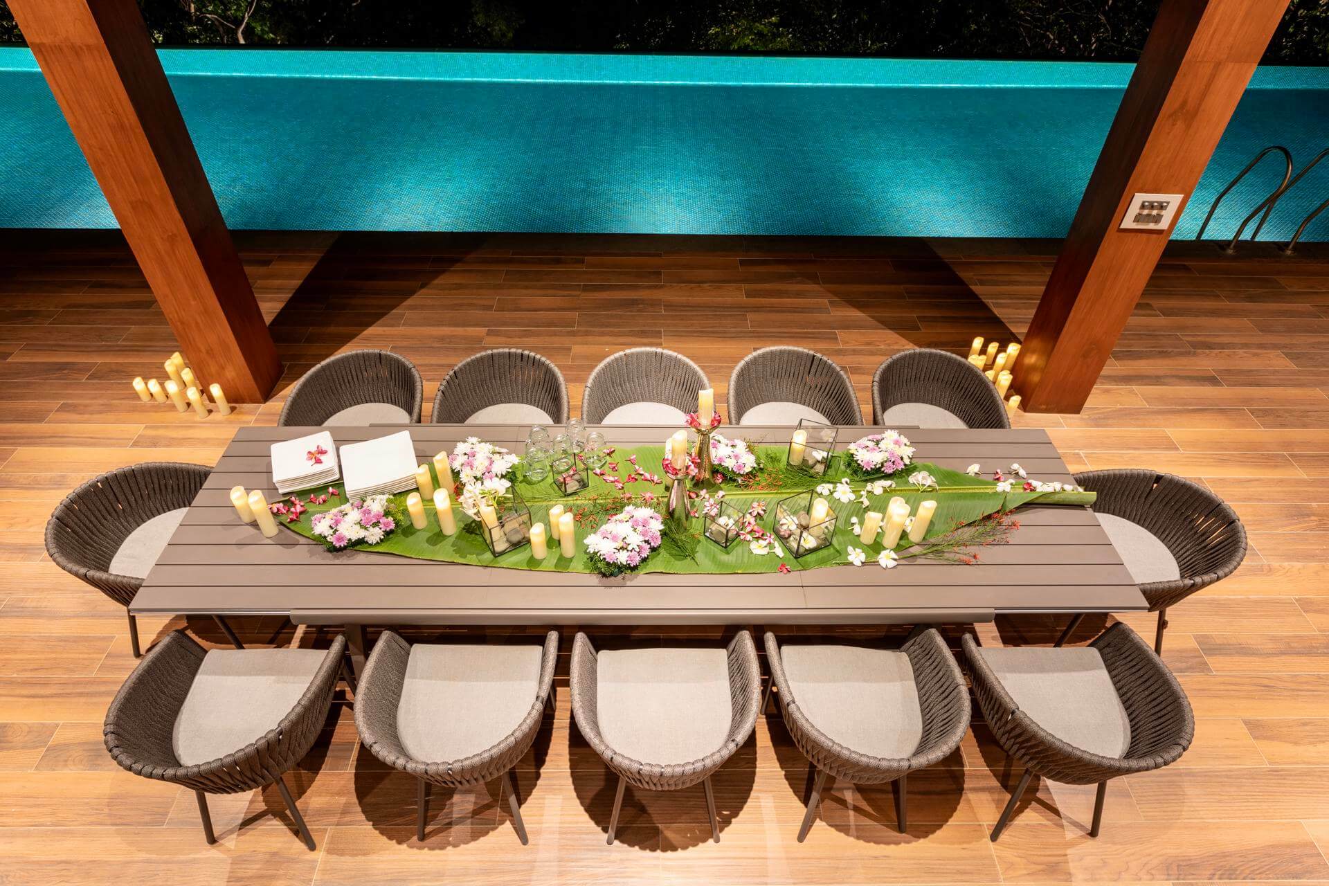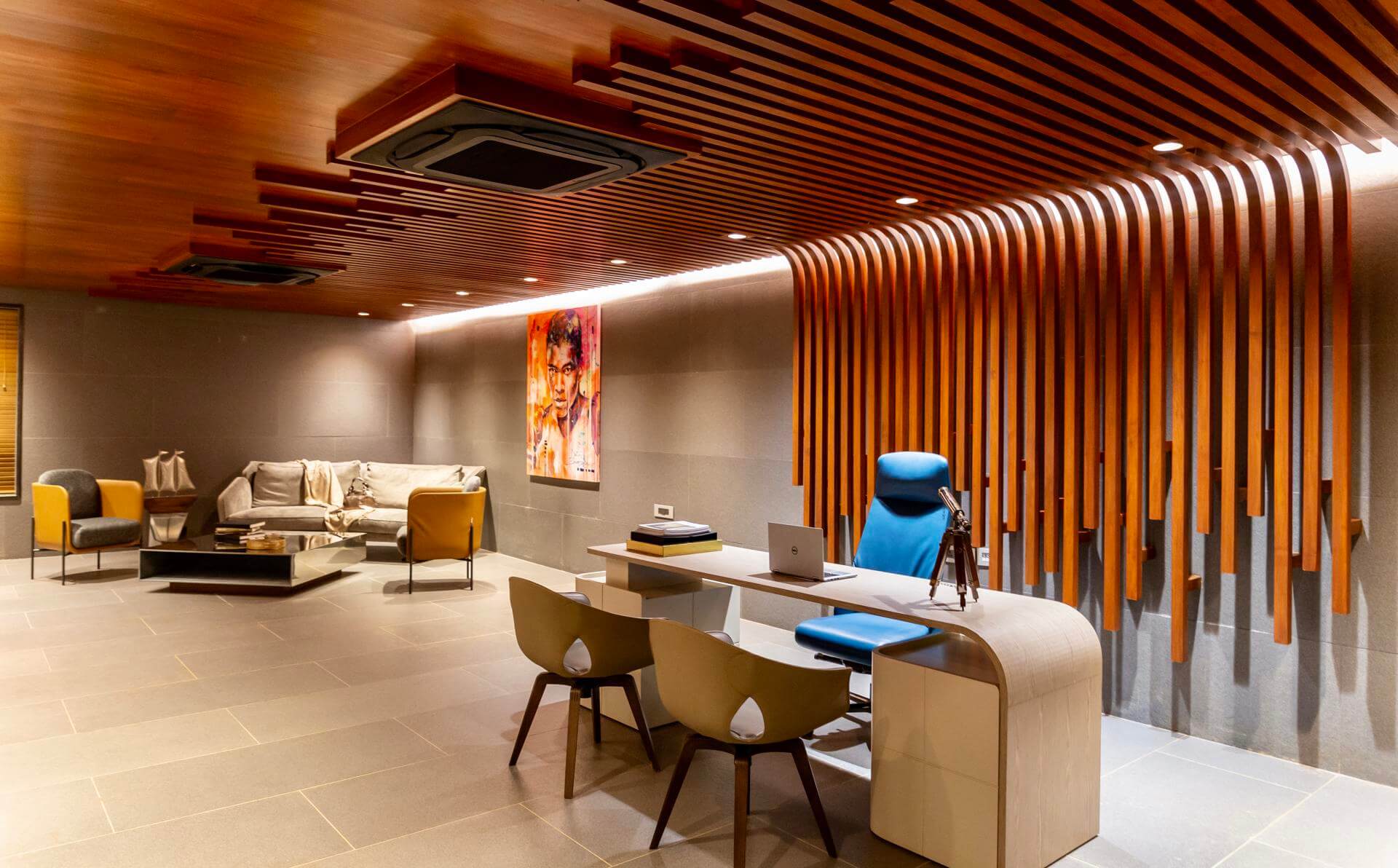 Likewise, the walls are not your generic texture! The undulations and levels have been achieved at the time of doing the civil work itself. Layers of cement, innumerable site visits to achieve the shapes and many costs of plaster of Paris and texture material later, we managed to achieve a finish that looks natural to the eye and soft to the touch!