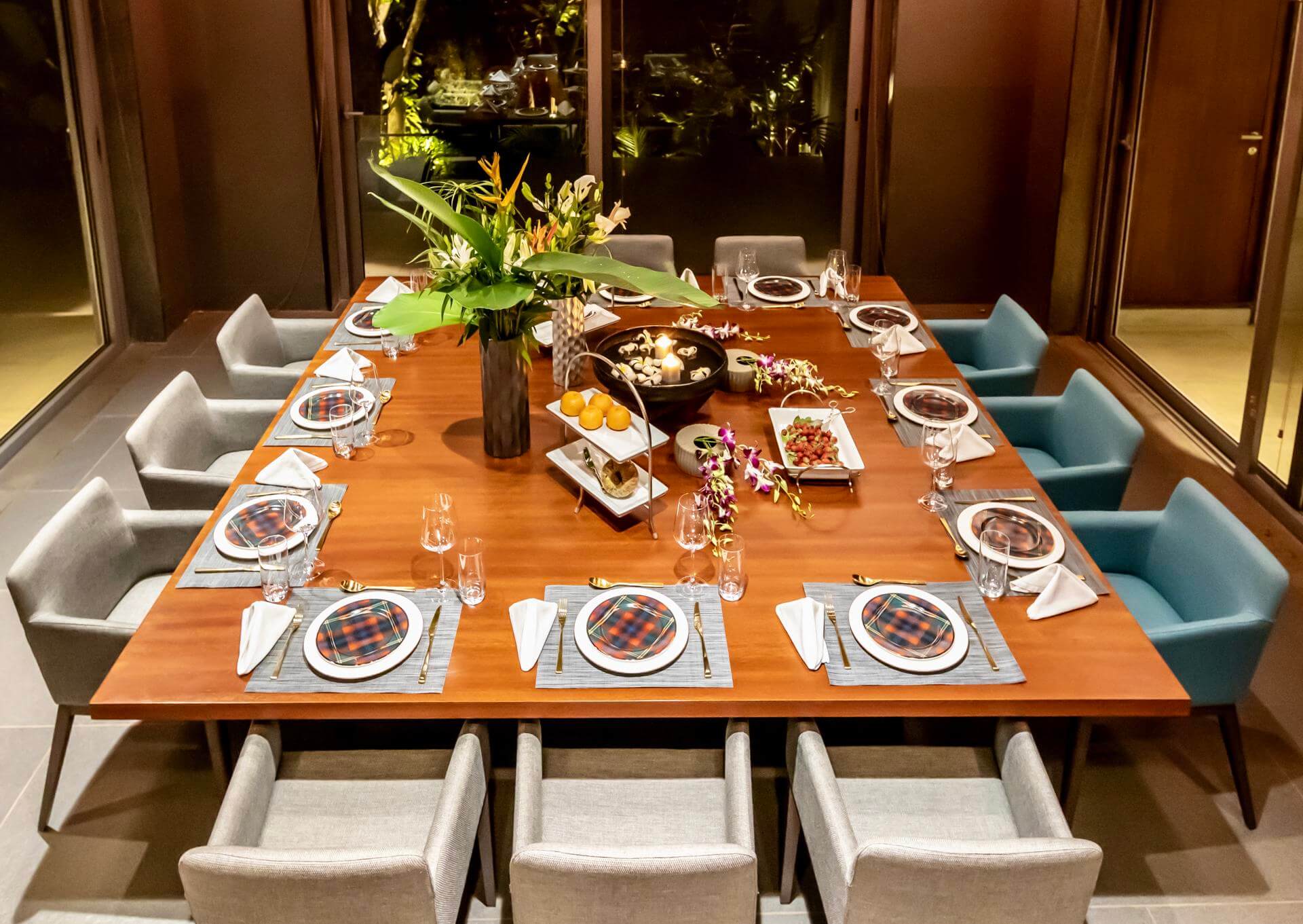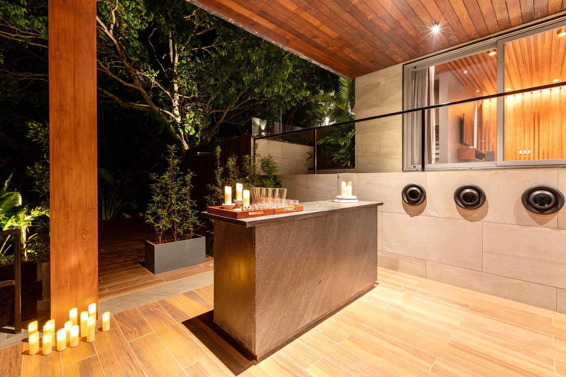 The flooring was a meticulous labor of love that went through many trial and errors to get to this stage! The standard ash grey stone was procured in large sizes, shaped and chiseled in the factory, finished multiple times on all sides with a machine and with sealant and then laid over a few months and finally filled with a white epoxy in between!